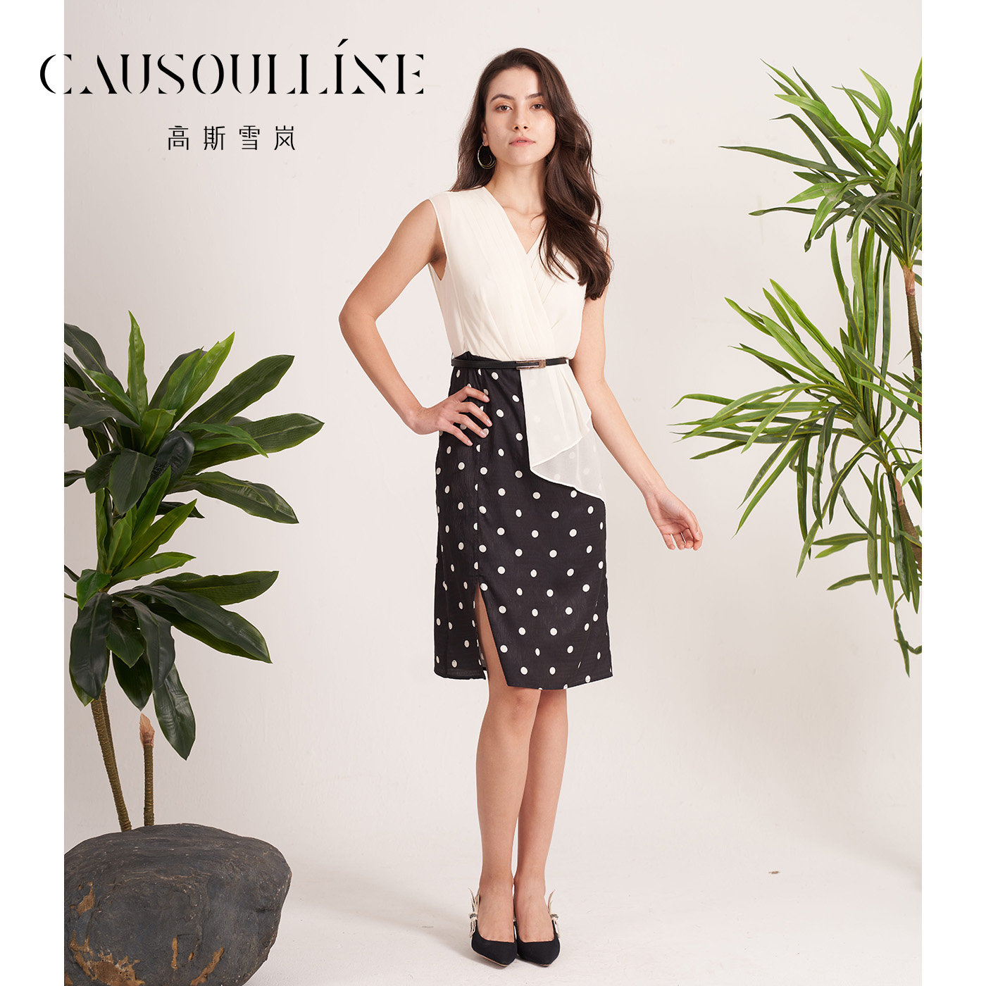 高斯雪岚夏季新款波点系带连衣裙荷叶边雪纺女裙气质开叉裙