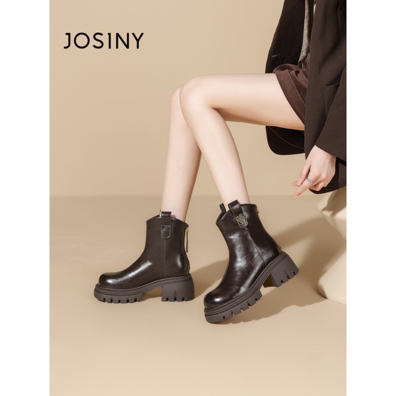 卓诗尼2025冬季新款粗跟短筒靴时尚舒适切尔西靴潮流后拉链时装靴