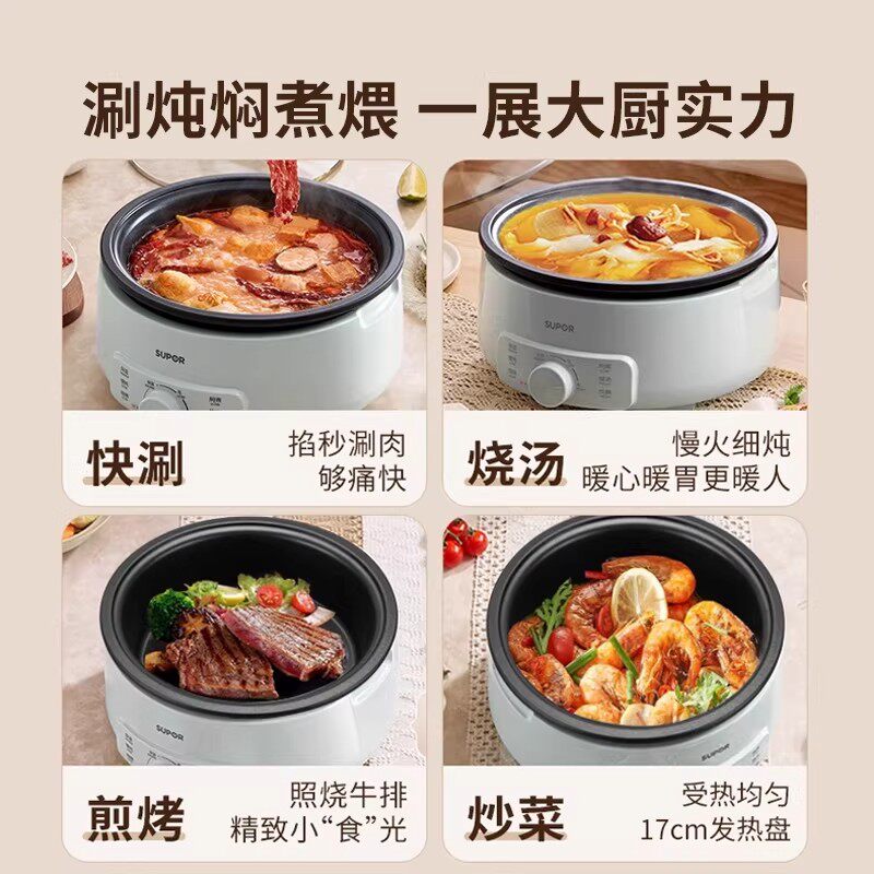 苏泊尔电火锅电锅家用分体小型电热锅蒸炒煎不粘一体多功能电煮锅