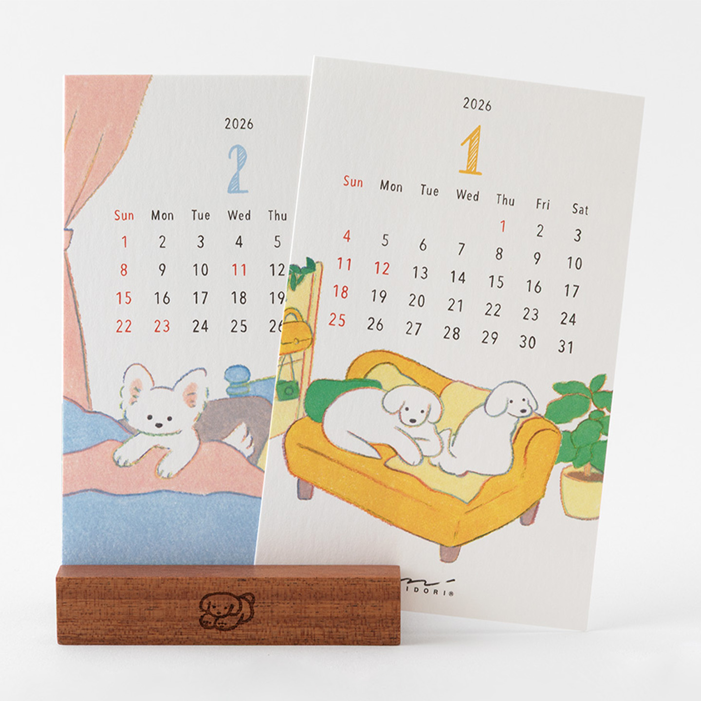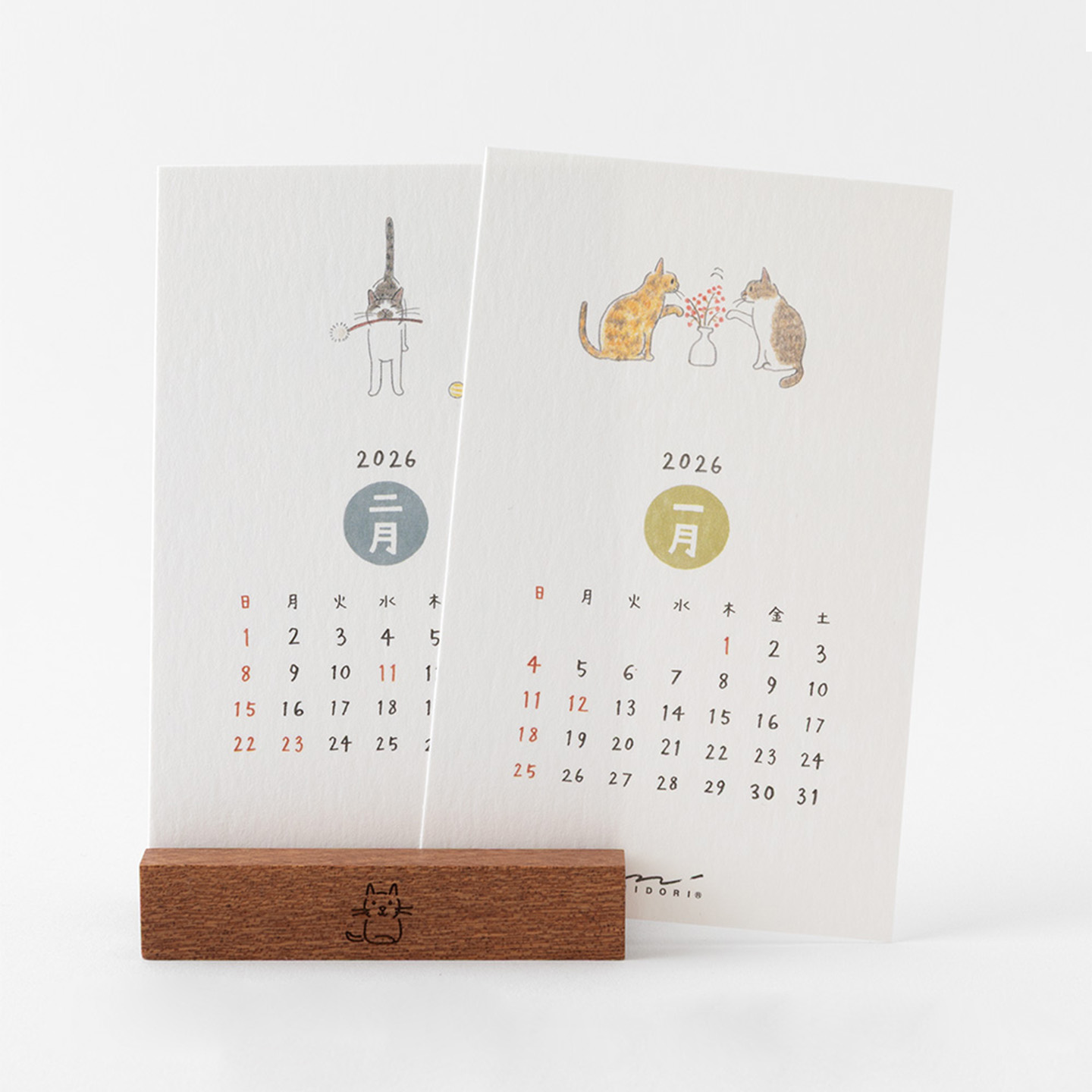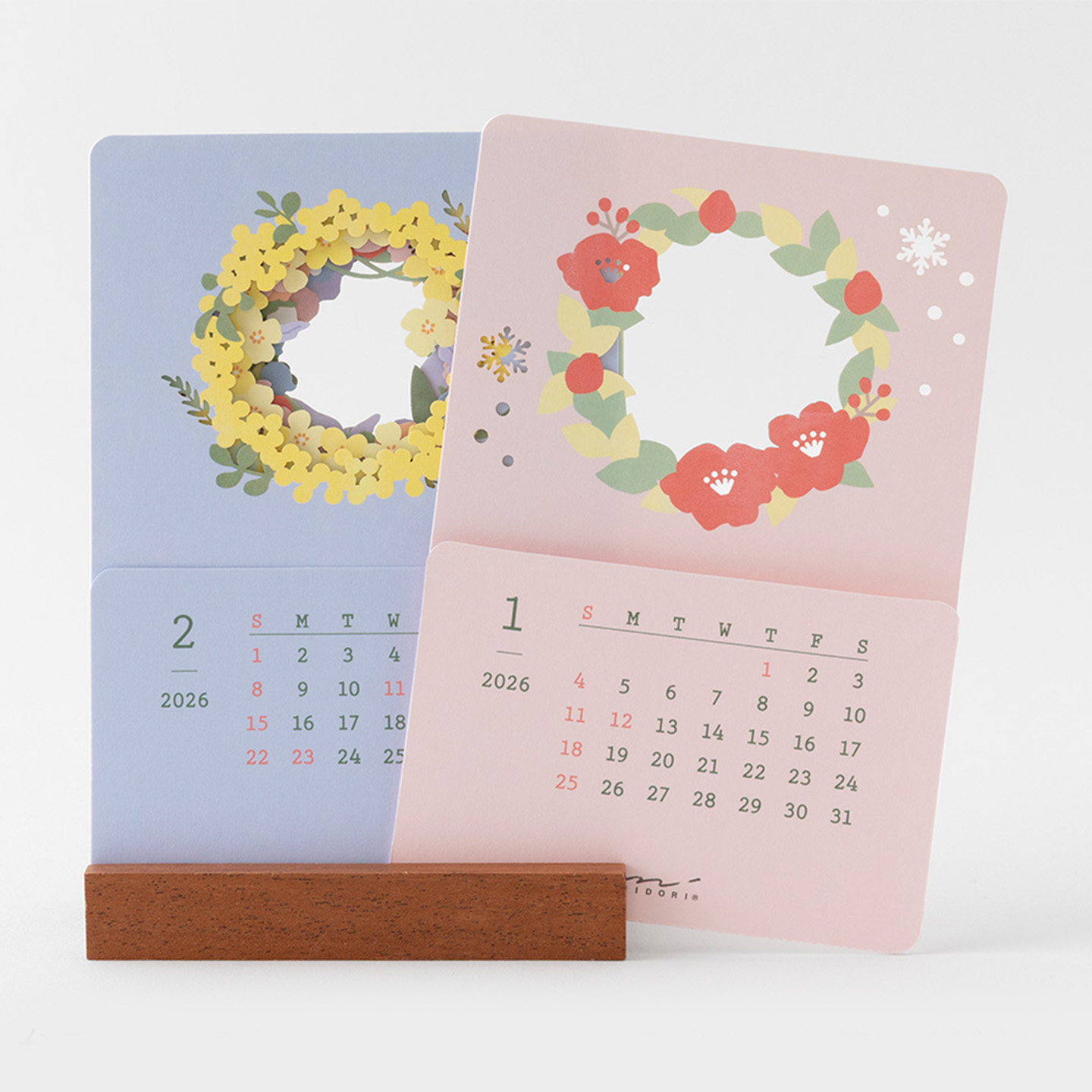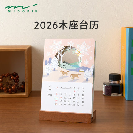 日本MIDORI台历2026年新款木座台历创意纸雕设计可爱手绘风插画桌面办公记事月历ins风木质台历