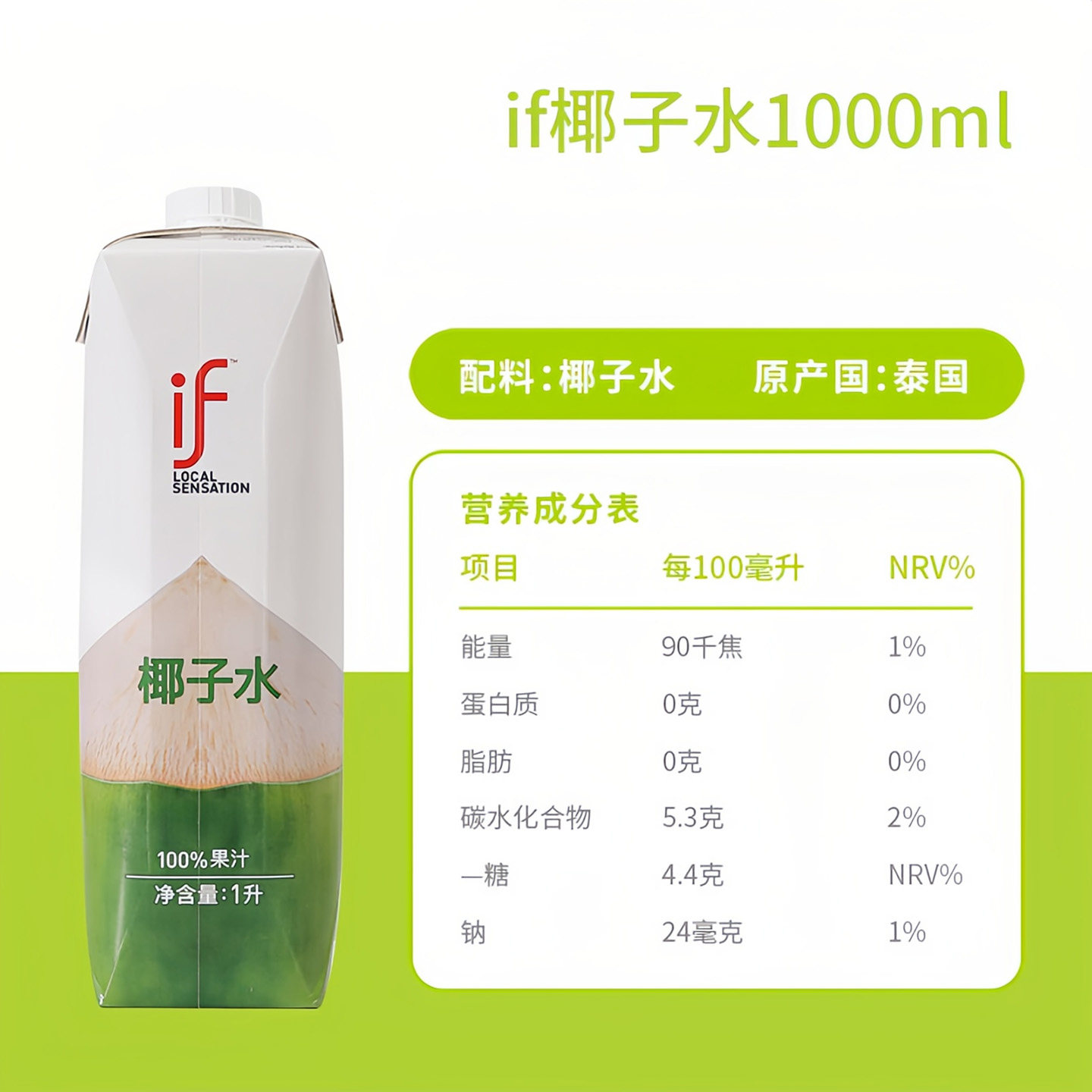 泰国进口百分百If椰子水1L*2瓶纯椰汁1000ml1升NFC椰青水饮料品