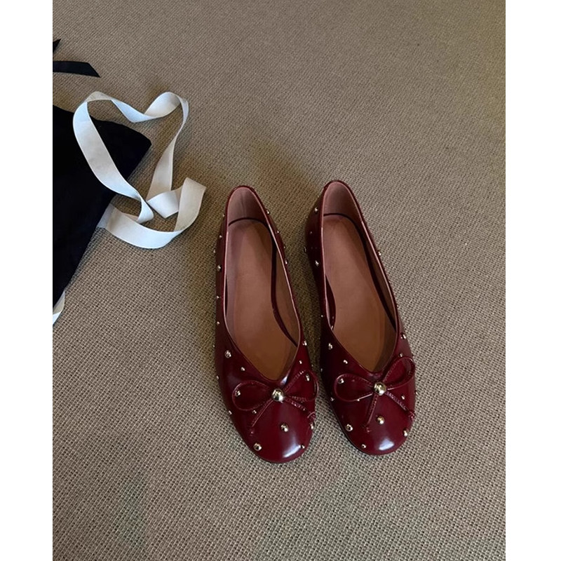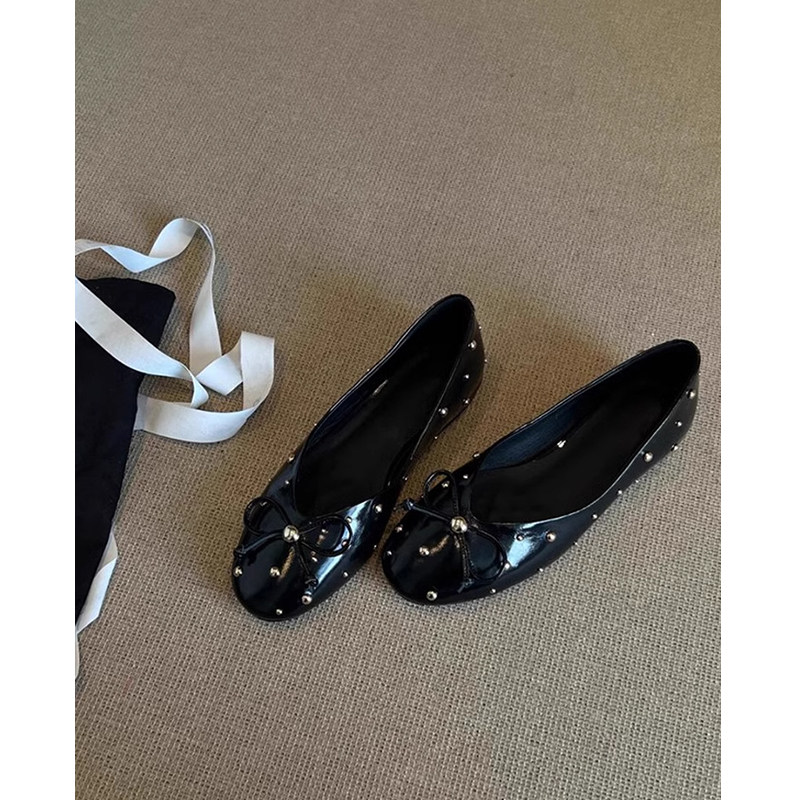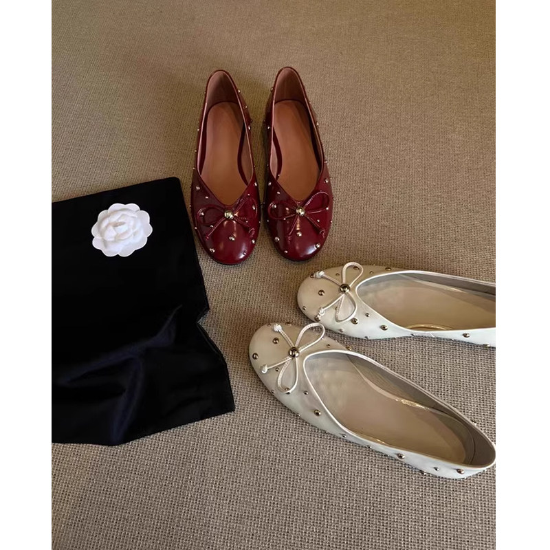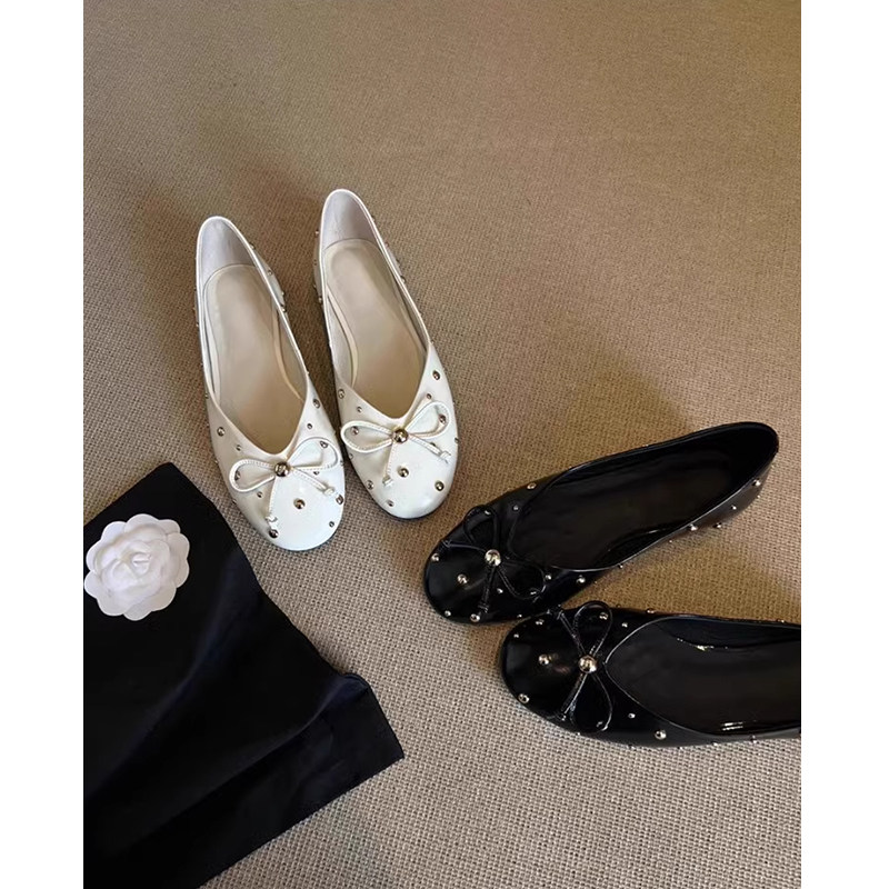 时尚铆钉蝴蝶结浅口平底鞋女2025春季新款法式小单鞋一脚蹬晚晚鞋