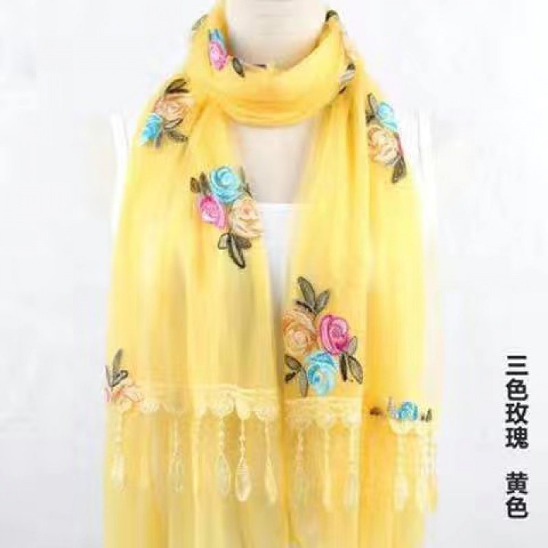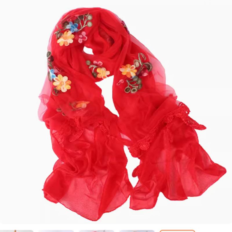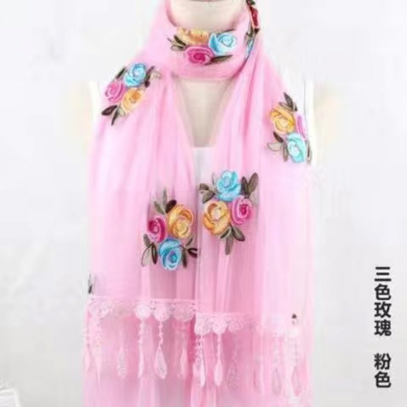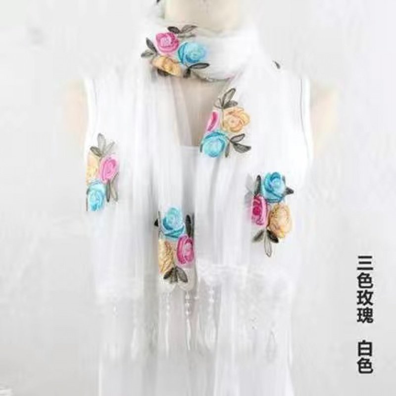 双层绣花围巾春夏季长款防晒丝巾