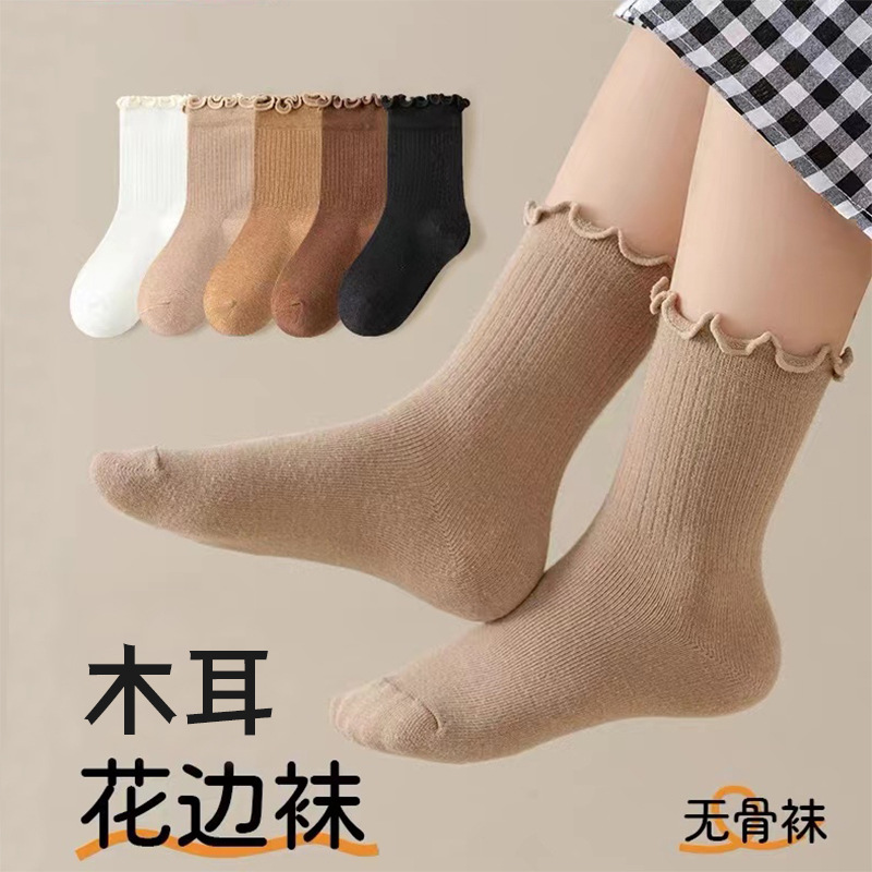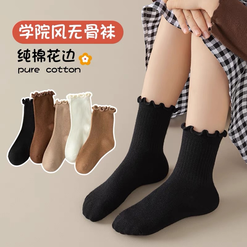 女童袜子儿童春秋冬款棉袜中筒袜女孩宝宝木耳边小花中大童韩版潮