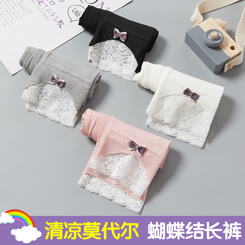 女童裤子夏季超薄款莫代尔蕾丝夏天九分儿童打底裤童装宝宝春夏装