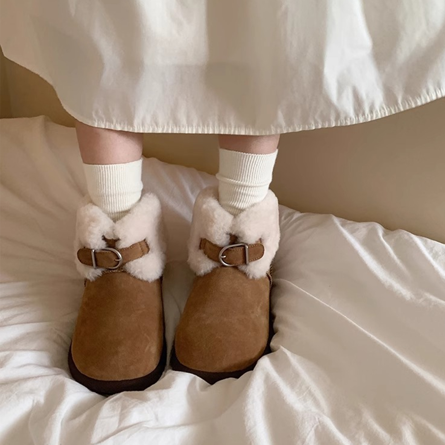 毛绒短靴女2025冬季新款高帮博肯棉鞋加绒保暖休闲百搭雪地靴子女