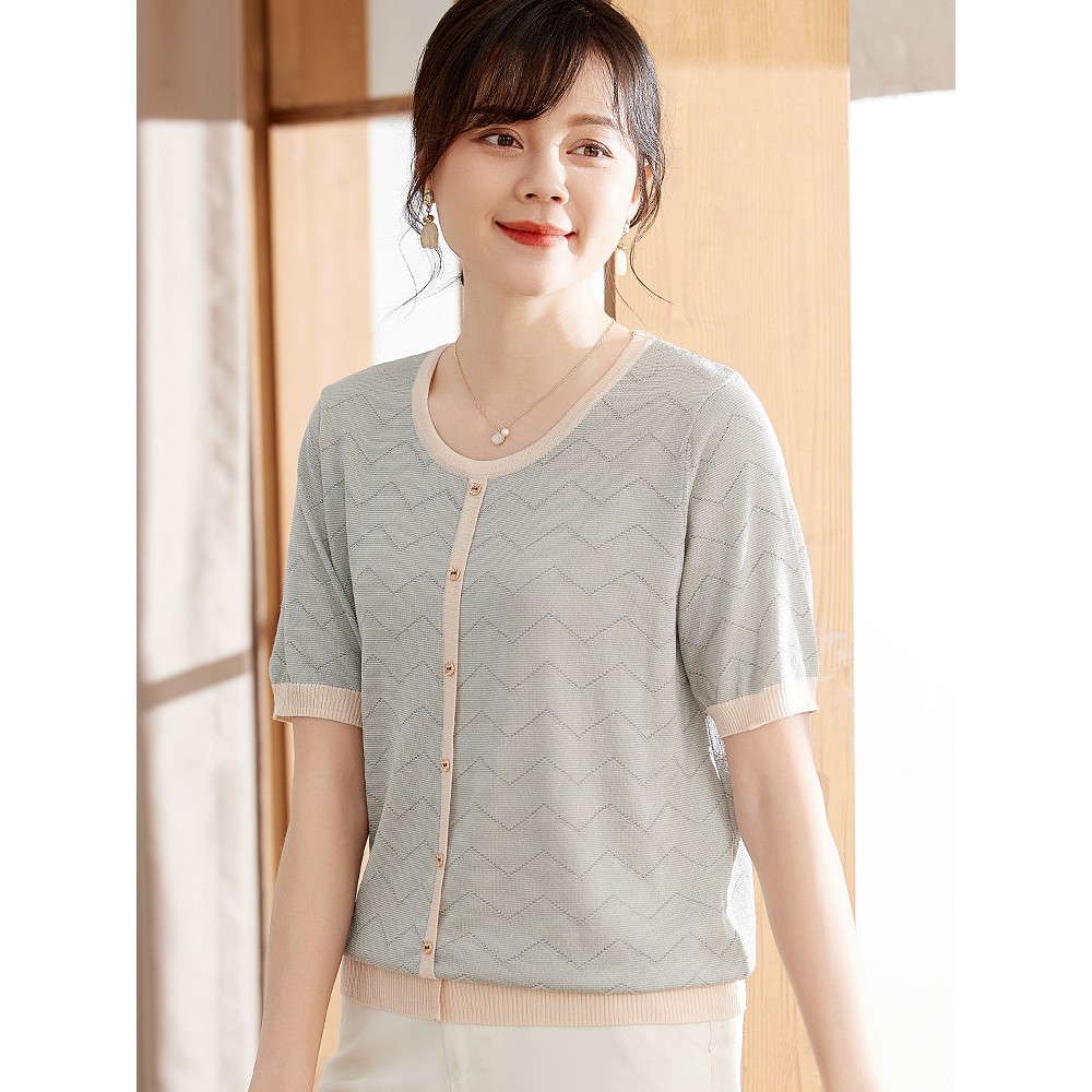 喜卉妈妈夏装短袖t恤2025新款针织小衫中老年女装洋气冰丝上衣服