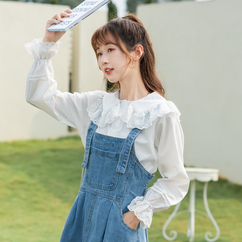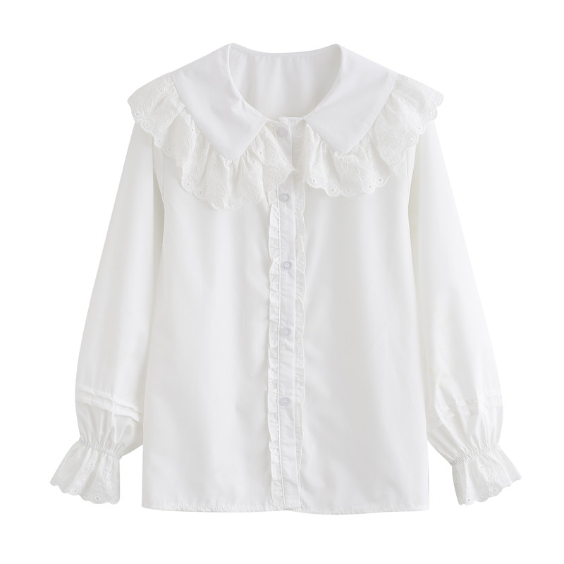 白色娃娃领衬衫女设计感气质春季长袖衬衣2025新款显瘦上衣喇叭袖