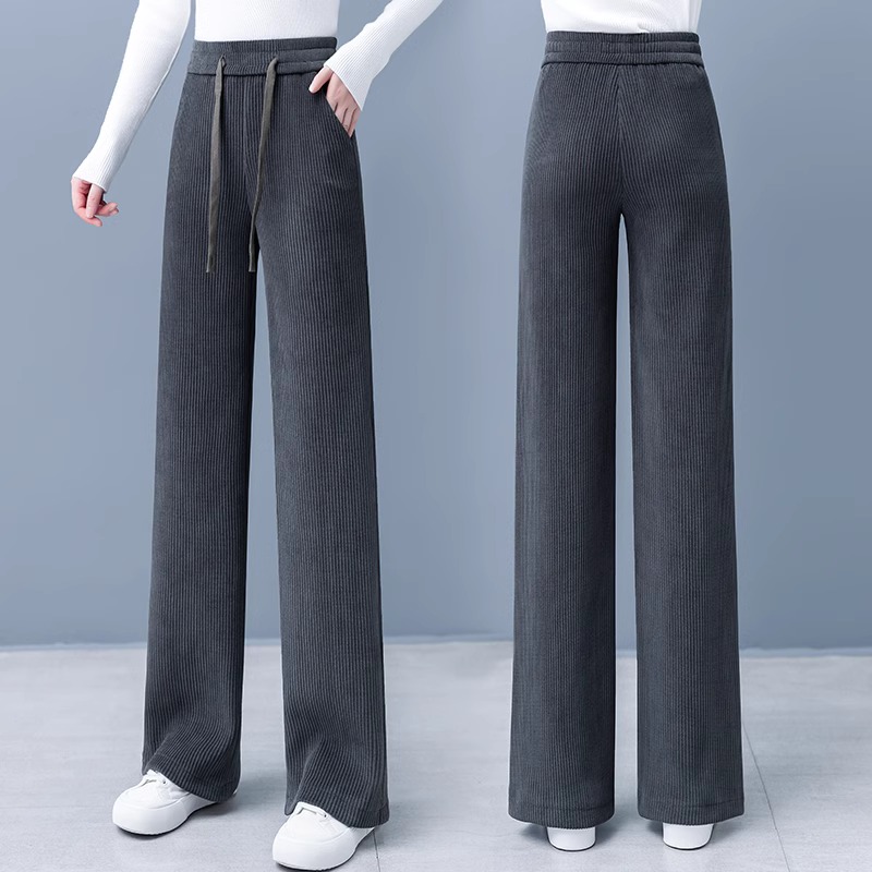 加绒雪尼尔阔腿裤女大码胖mm秋冬季加厚灯芯绒身材直筒女裤子垂感