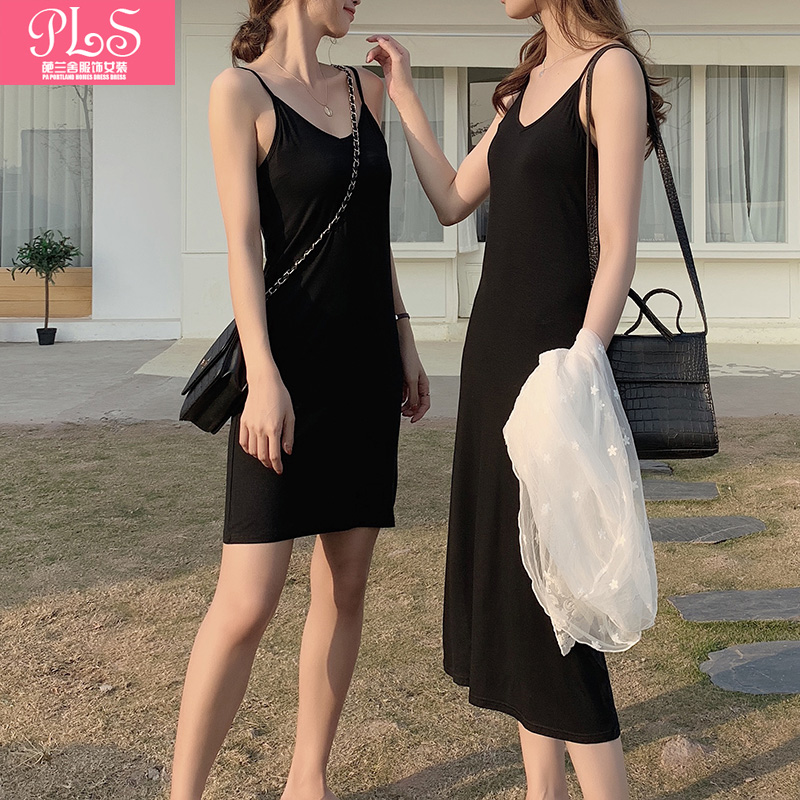 夏莫代尔韩版新款V领背心打底吊带连衣裙内搭纯色修身闺蜜装女装
