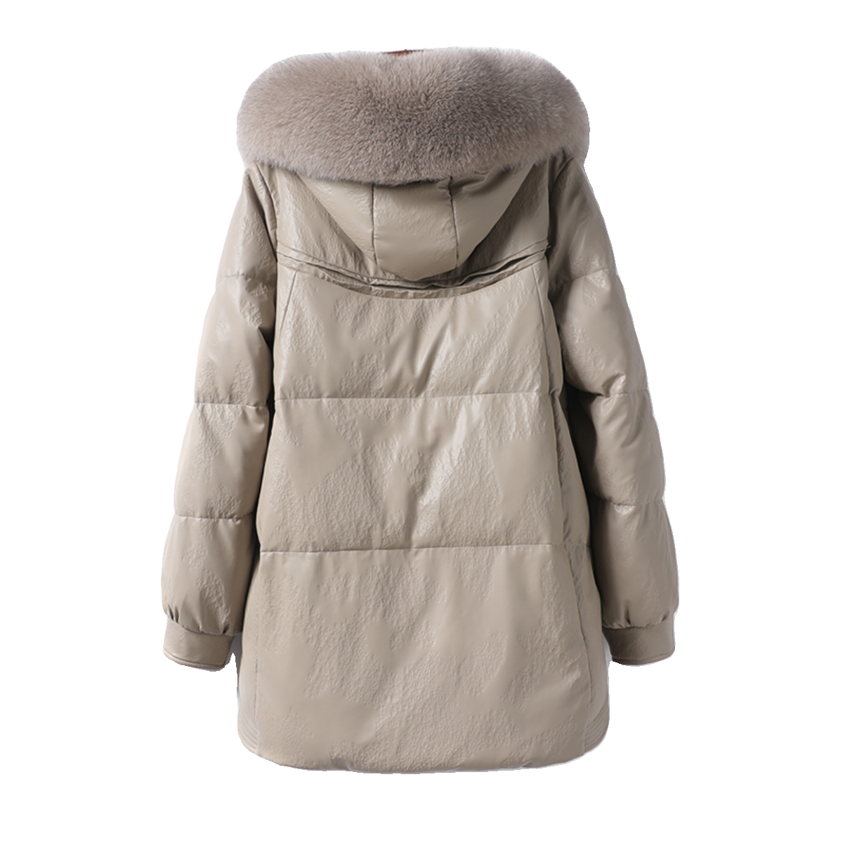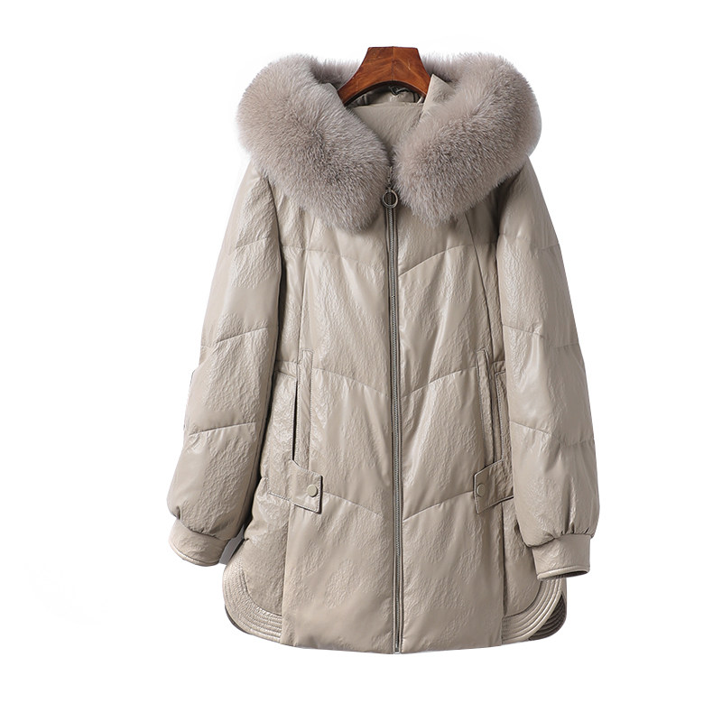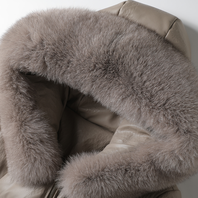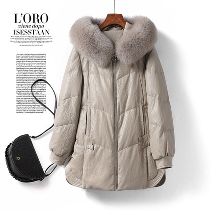 绵羊皮衣女真皮外套常规连帽狐狸毛领90白鸭绒海宁2025新款皮羽绒