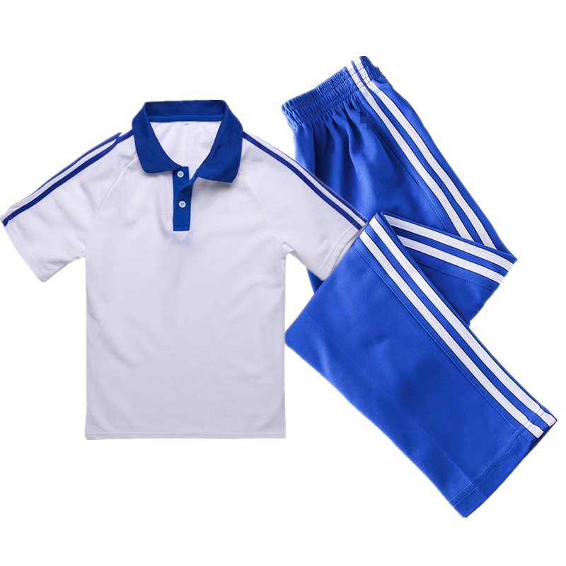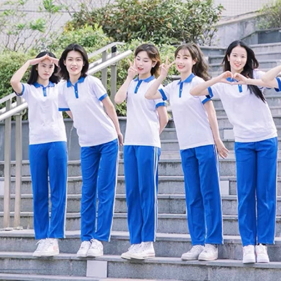 夏装学生校服翻领polo衫短袖T恤女宽松男上衣长裤运动套装班服ins