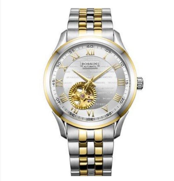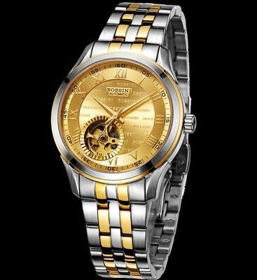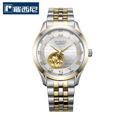 罗西尼自动机械女6520商务时尚镂空透底金表18K金男6519情侣手表
