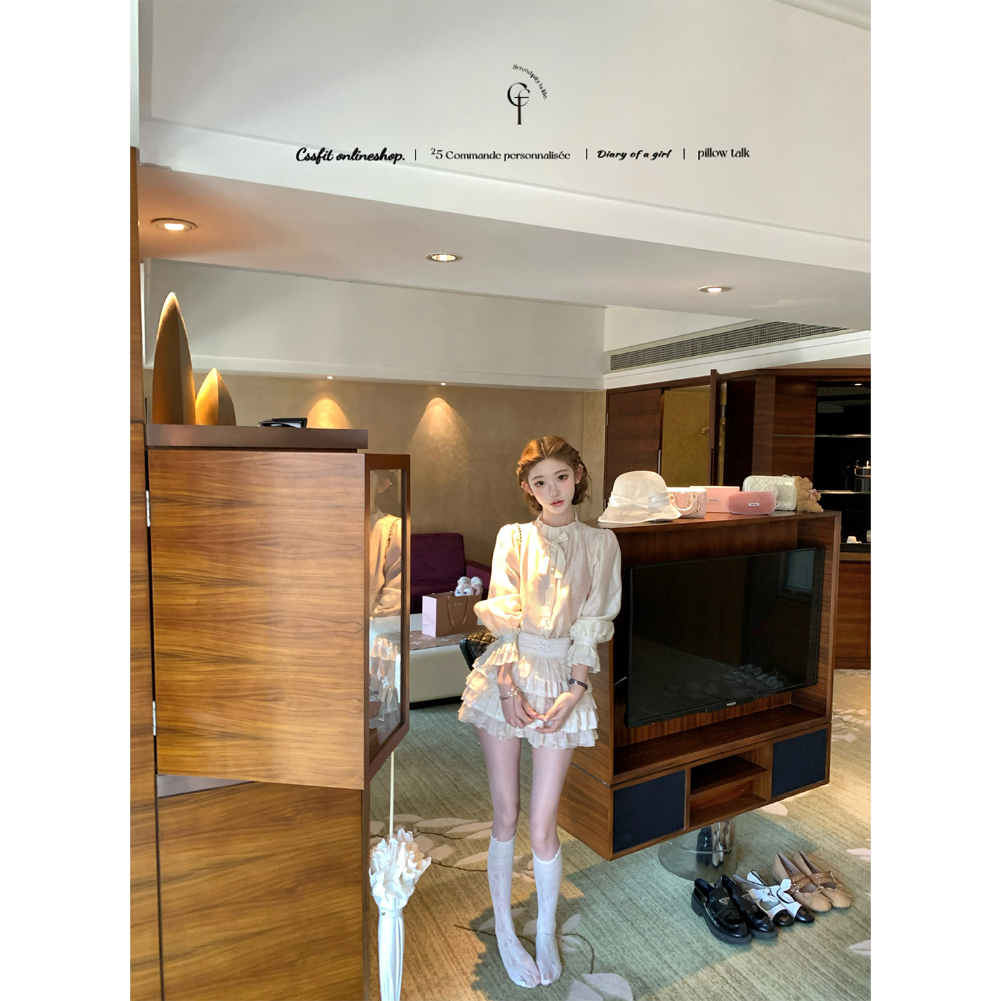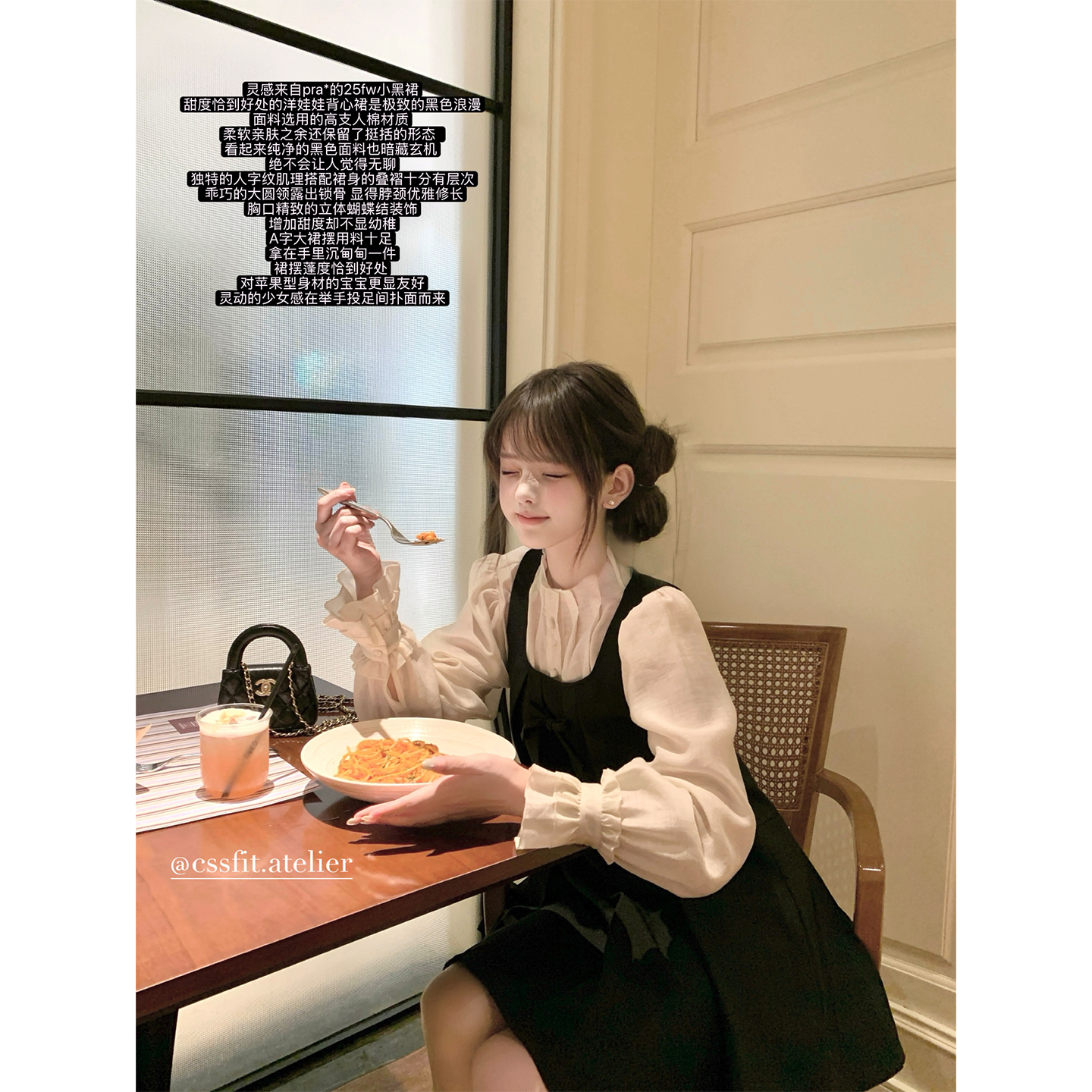 迟伞伞25/fw 黑檀珍珠 pra*黑蝴蝶结无袖背心裙香槟天丝衬衫套装