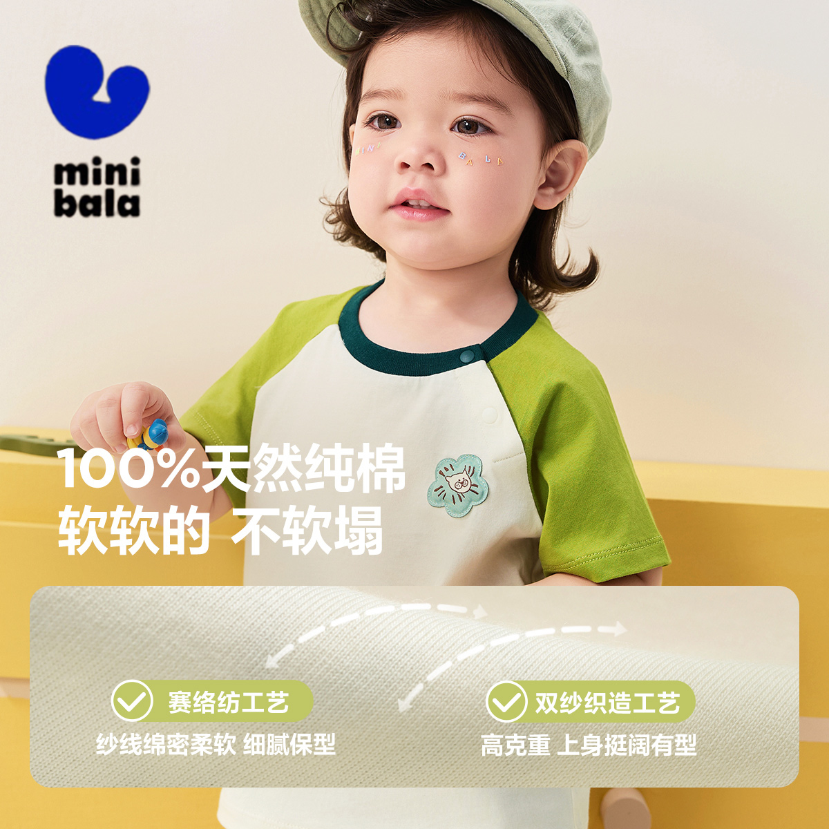 迷你巴拉巴拉男童纯棉短袖T恤插肩袖2025夏季儿童宝宝撞色圆领萌