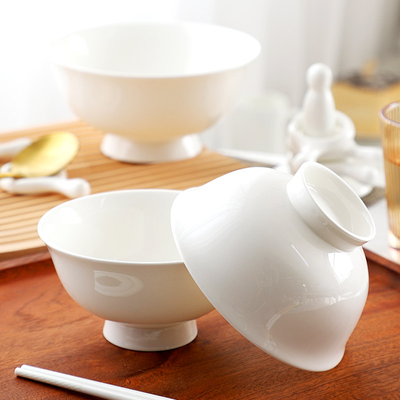 纯白骨瓷碗家用饭碗米饭碗小汤碗大号面碗陶瓷大碗高脚碗