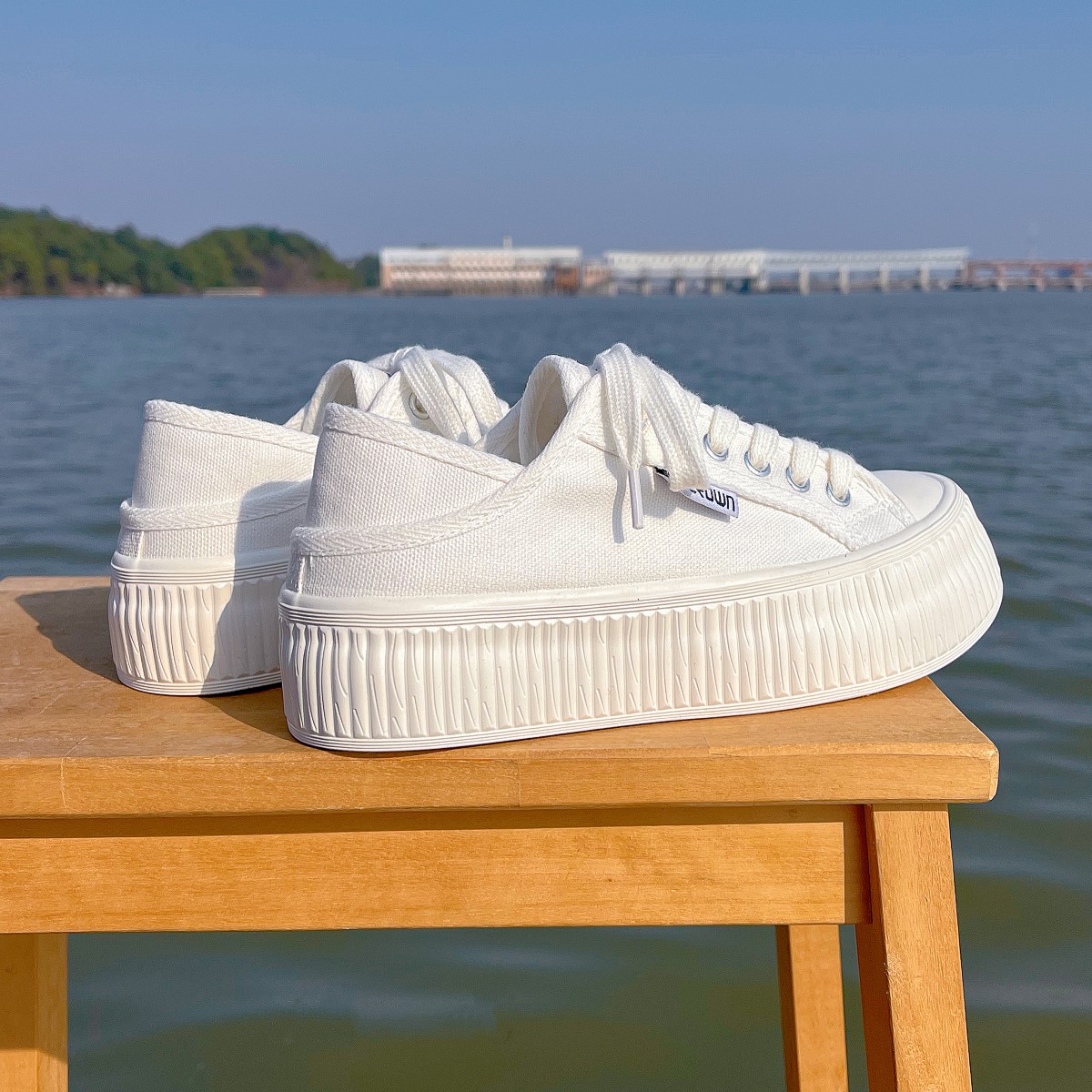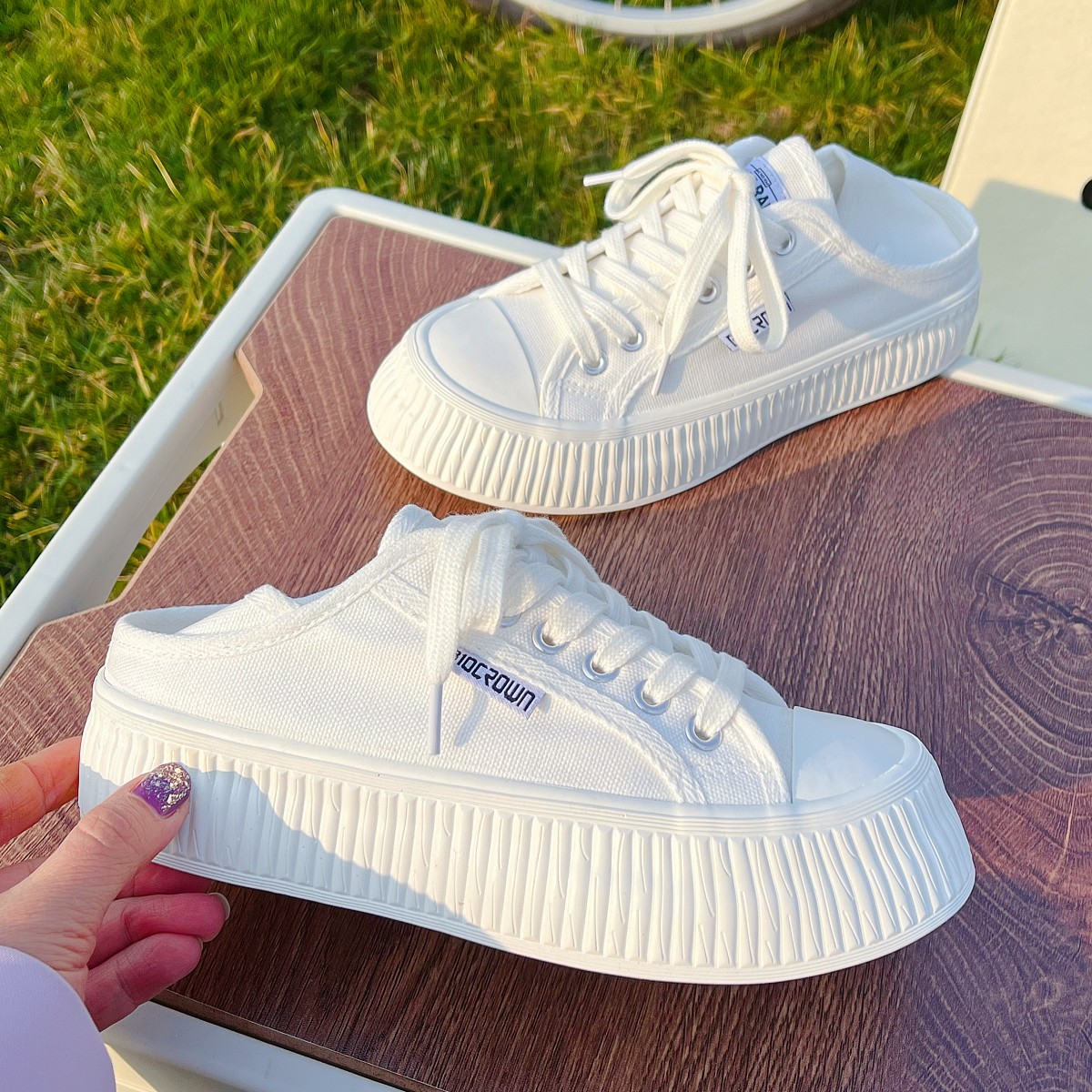 2025春季新款半拖帆布鞋女厚底增高小白鞋可踩两穿百搭松糕板鞋潮