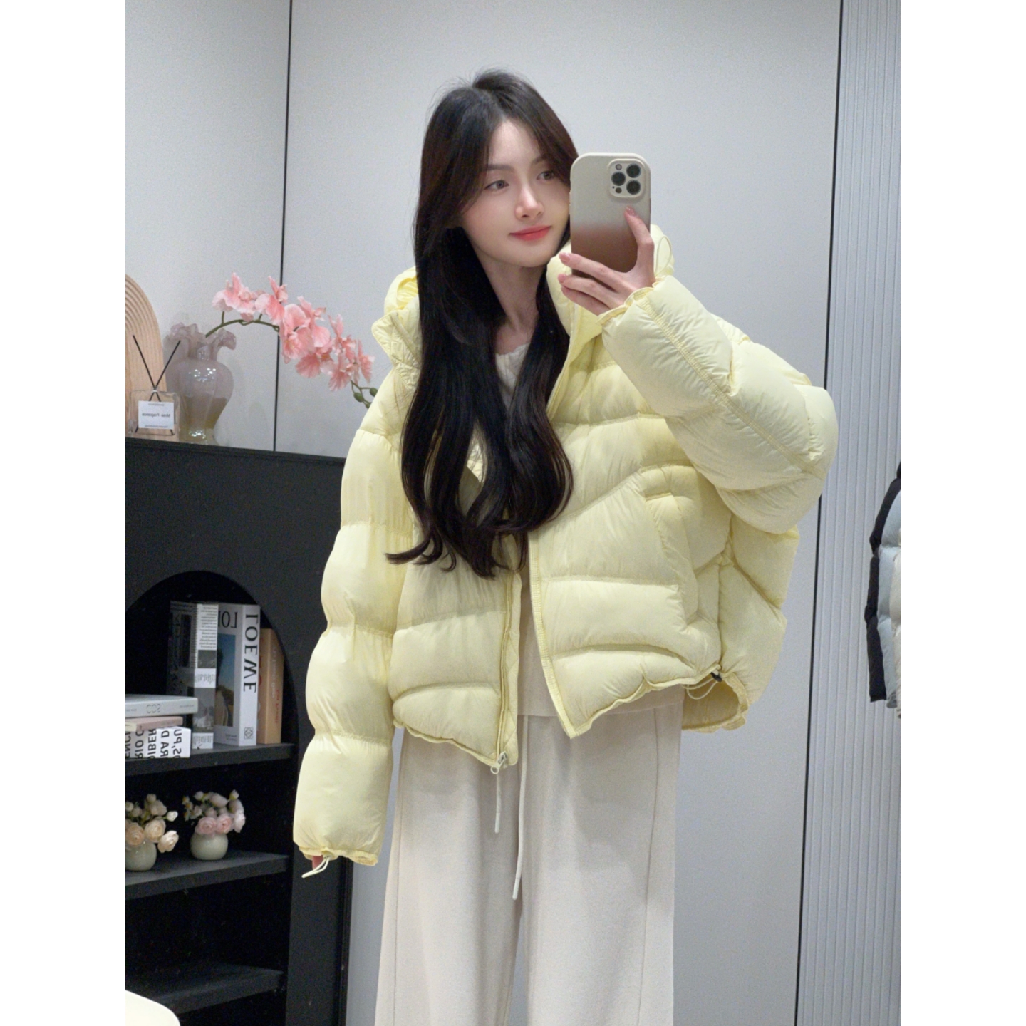 韩系波浪绗线泡芙连帽羽绒服女短款2025冬季新款90白鸭绒外套宽松