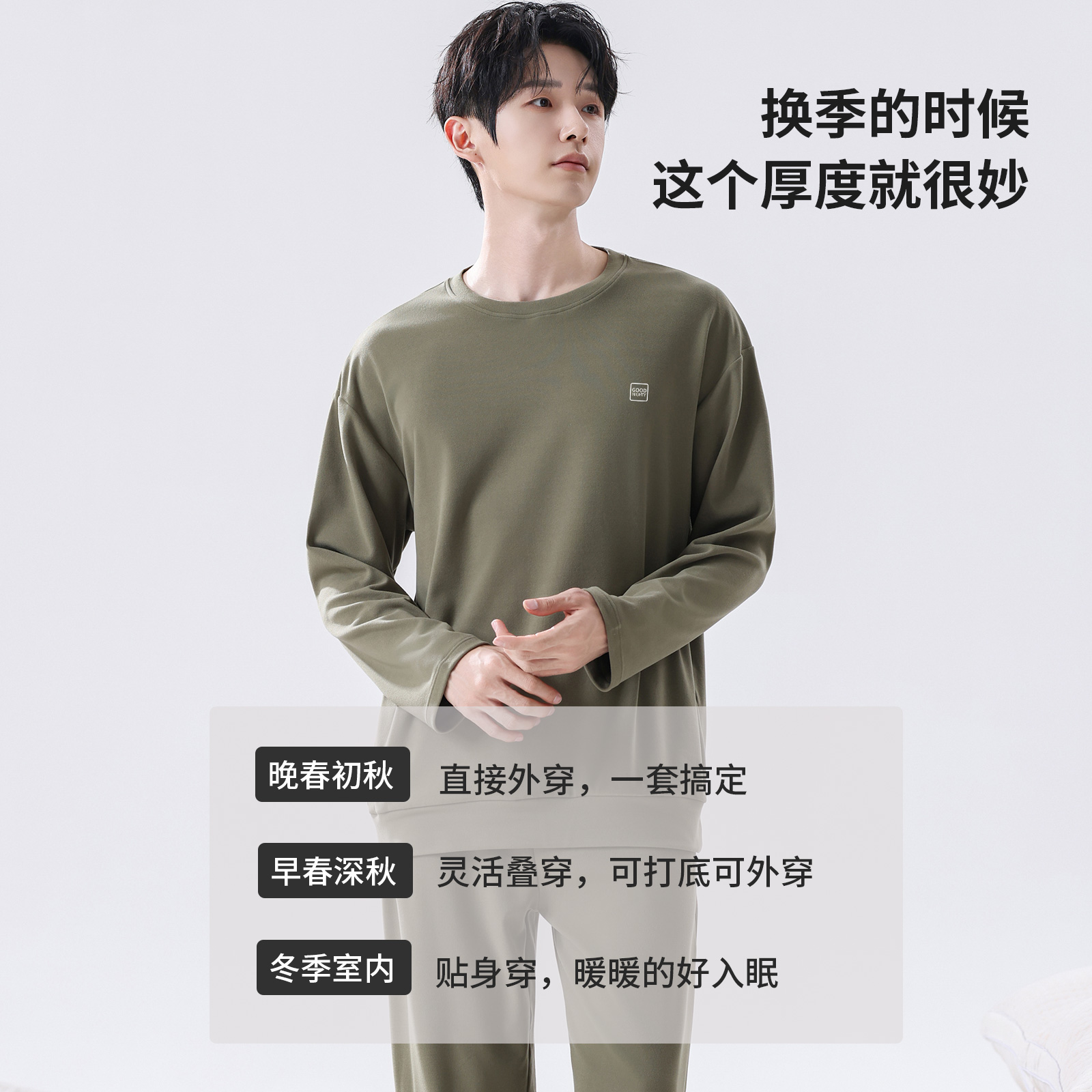 恒源祥男士睡衣秋冬季家居服套装阳离子暖绒贴身打底衫秋衣秋裤