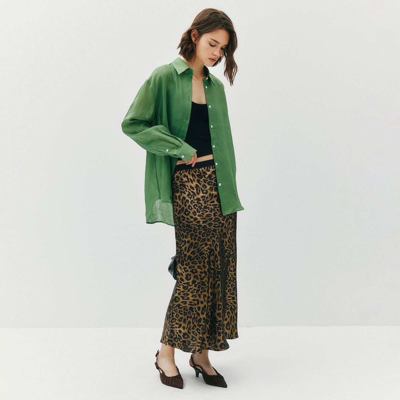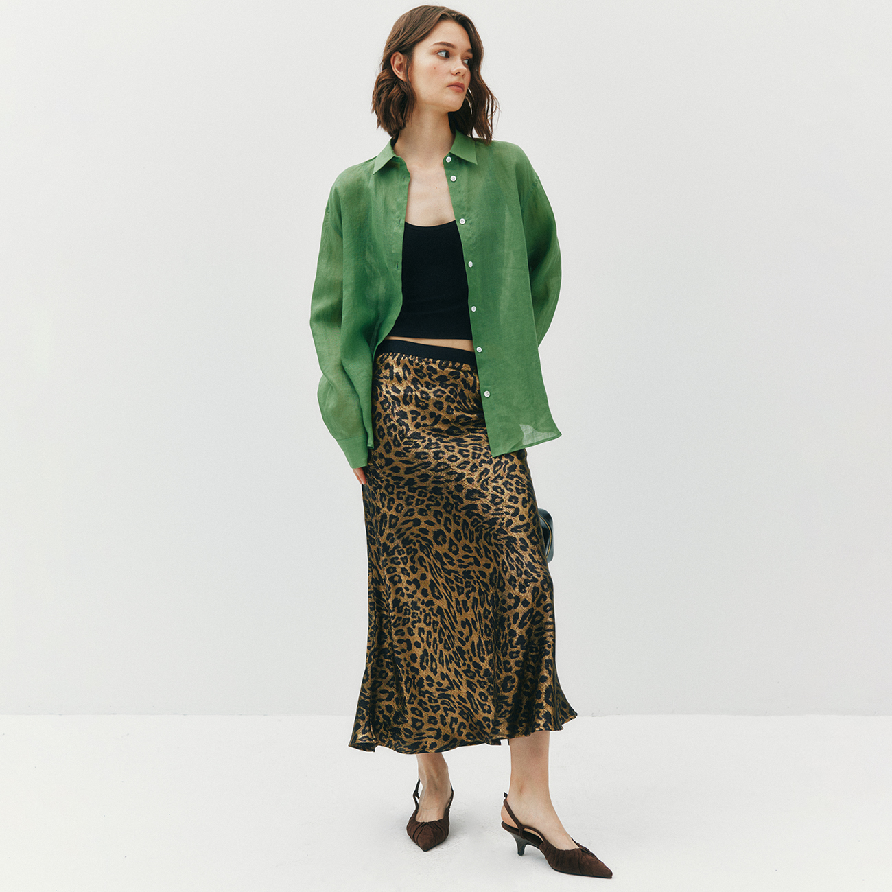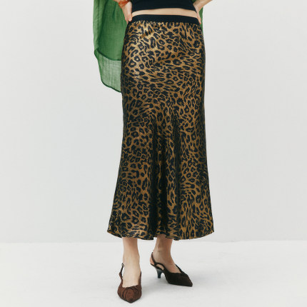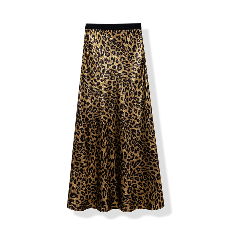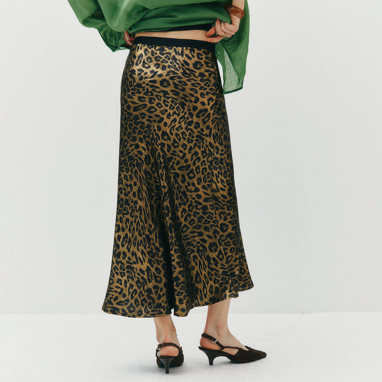 现货【野兽派】彩膜特烫工艺 博主豹纹印花烫金直筒微包臀半身裙
