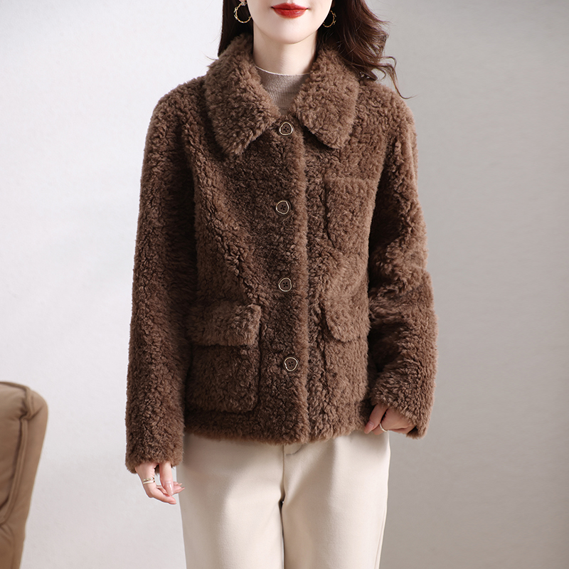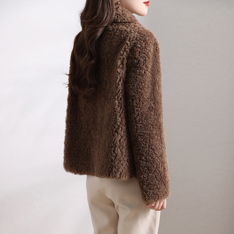 海宁颗粒绒皮草外套女装短款一体保暖加厚简约韩版羊羔毛大衣冬季