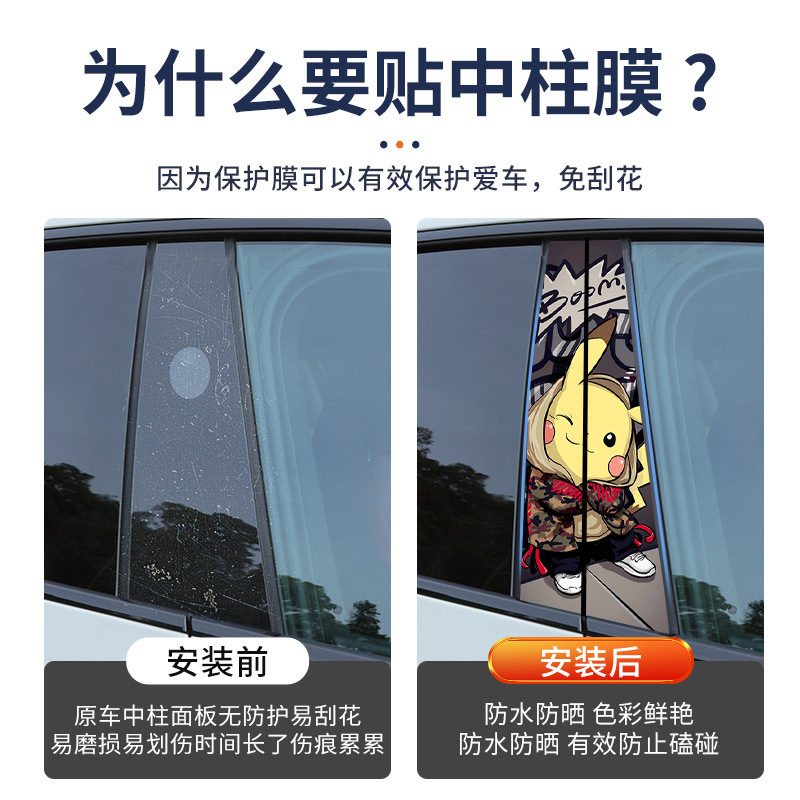 汽车中柱装饰贴车窗B柱保护膜同款个性创意改装彩绘亮条