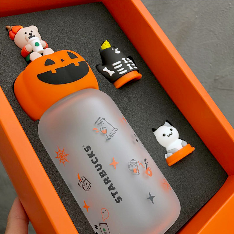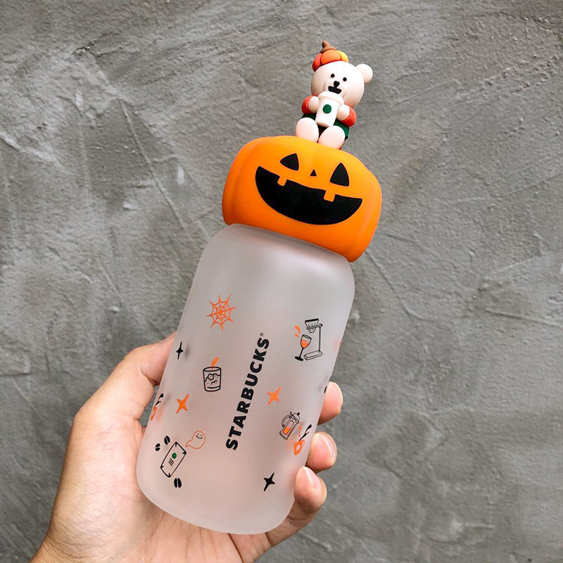 星巴克杯子2020万圣节南瓜款玻璃杯套装礼盒限量可爱小熊随行杯