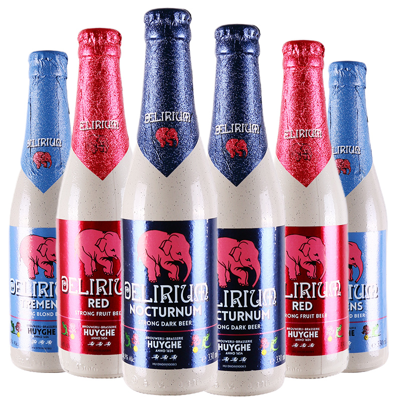 【进口】粉象/Delirium啤酒330ml*5瓶装比利时深/浅/樱桃果味啤酒