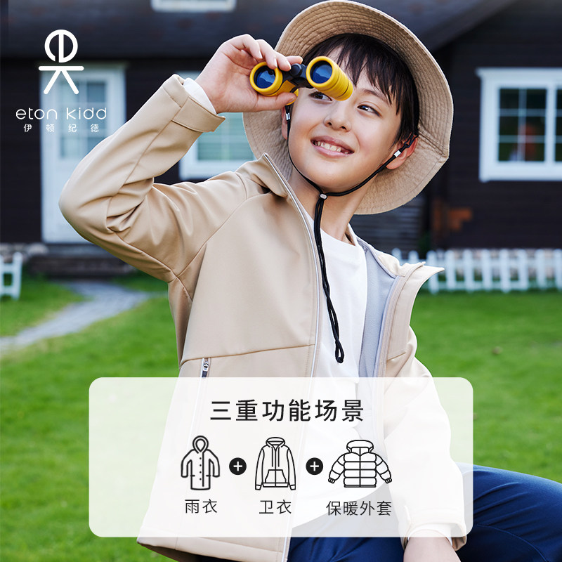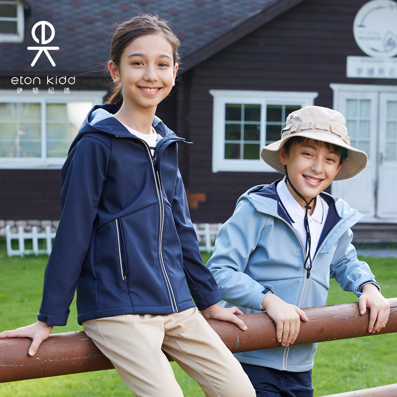 伊顿纪德2025儿童秋冬新款防风外套男女童户外软壳衣薄绒23R908