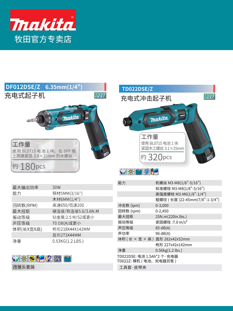 牧田小型电动螺丝起子机DF012DSE