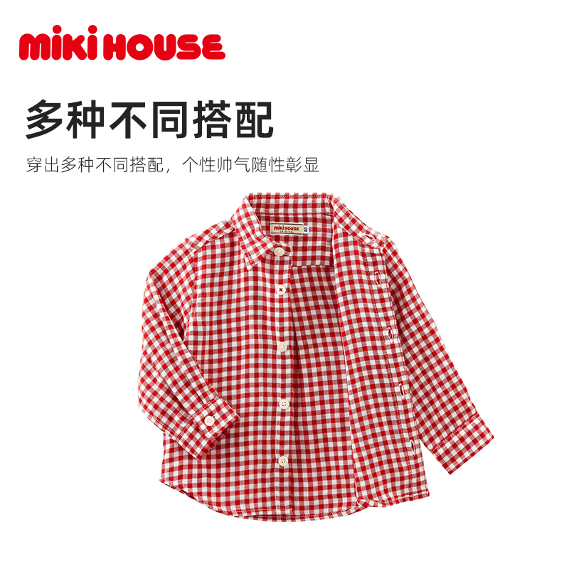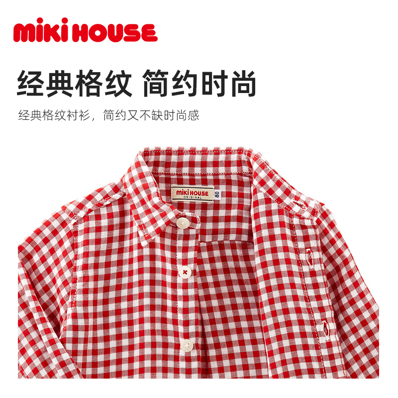 店播专享MIKIHOUSE男童衬衫宝宝上衣女童衬衫外套儿童格子款春秋