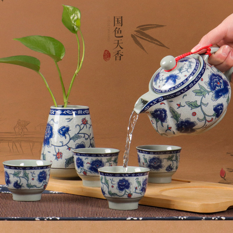 景德镇青花瓷陶瓷茶壶过滤单壶大号茶具500毫升容量家用泡茶套装