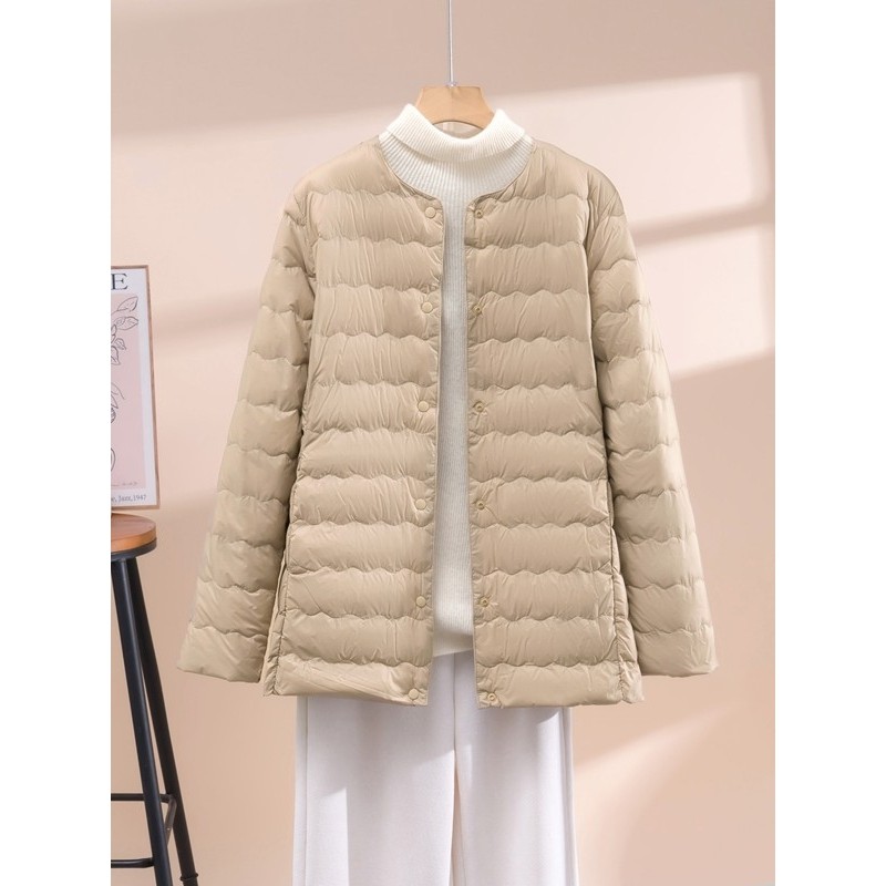 凯乐石薄荷2025新款轻薄羽绒服女中长款薄款时尚大衣内搭V领保暖