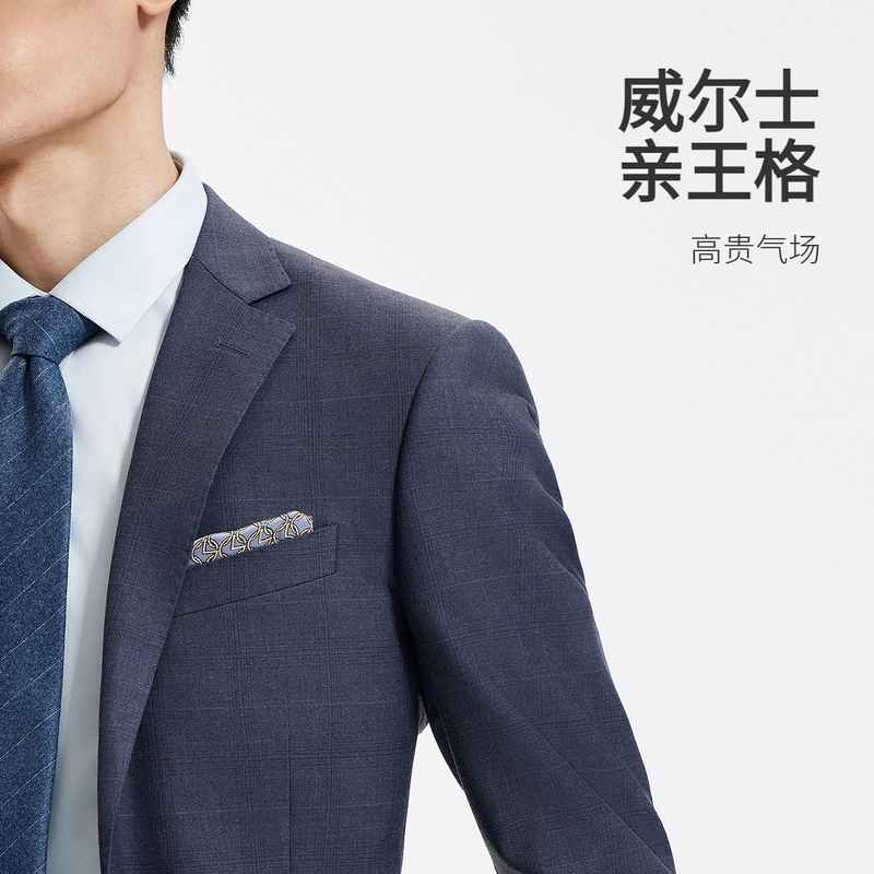 【羊毛】25秋冬新款男士西装经典格纹蓝色修身商务正装西服套西