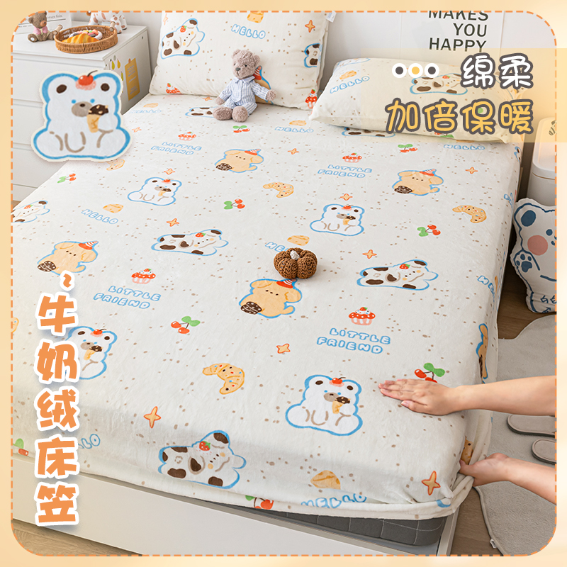牛奶绒珊瑚儿童床笠单件床罩床单1.2m婴儿宝宝床垫保护套定制冬款