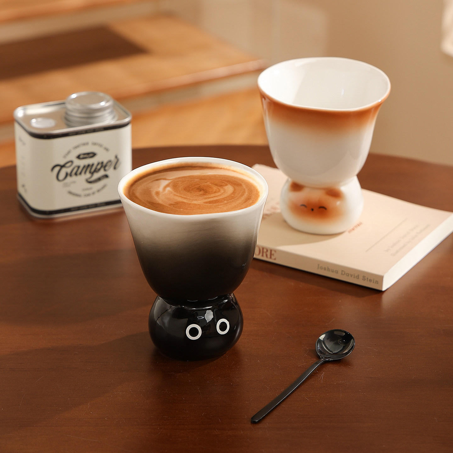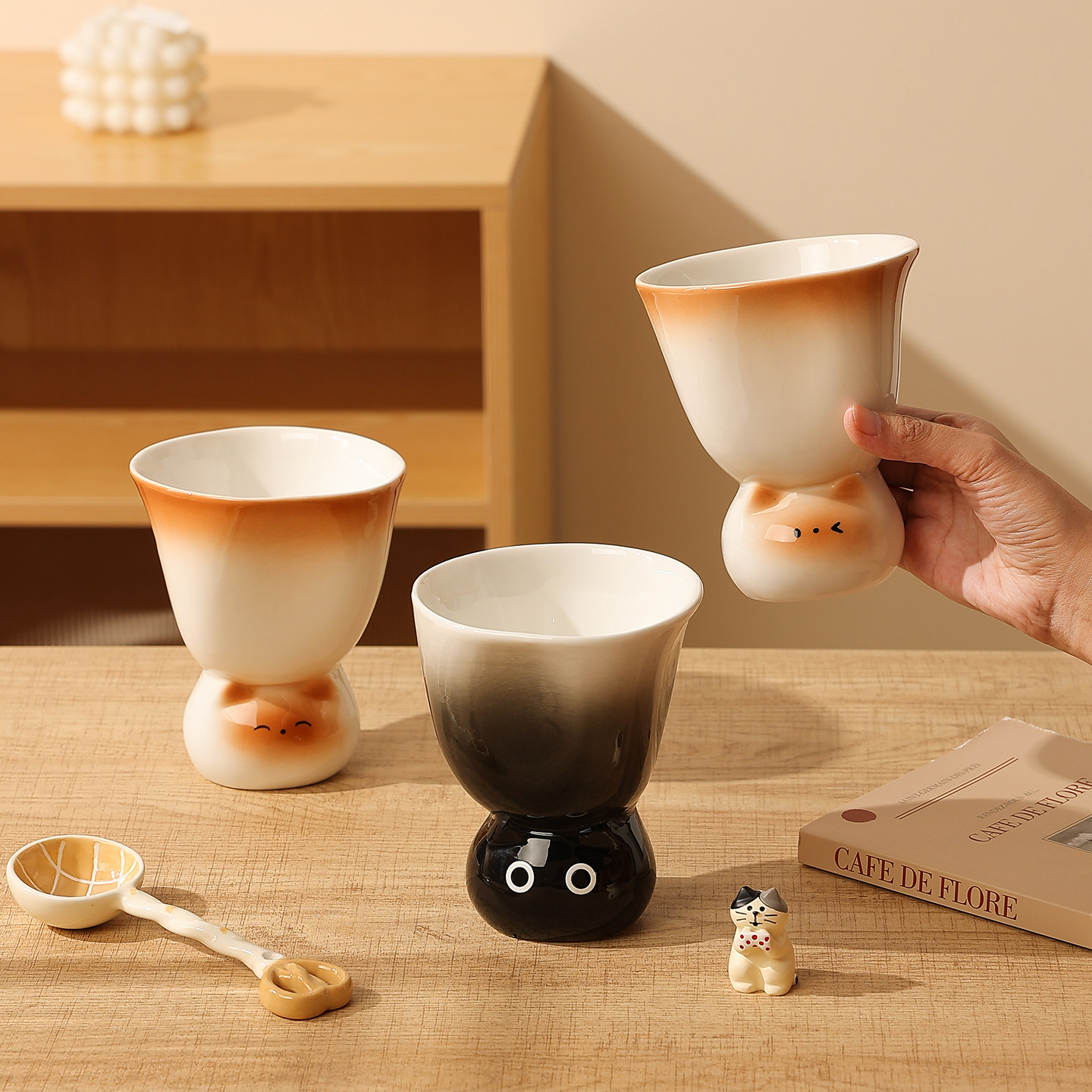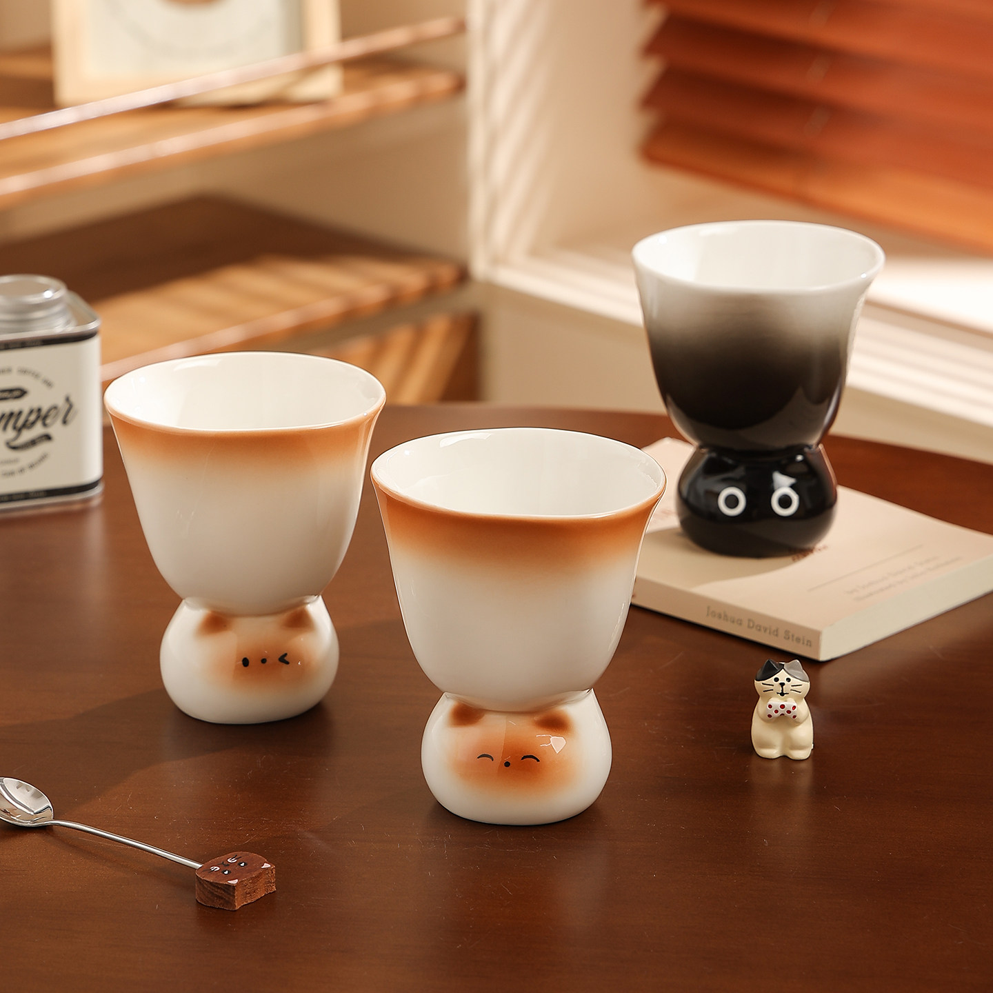 暹罗猫高脚杯咖啡杯陶瓷漂亮喝水杯子女生高颜值马克杯家用早餐杯