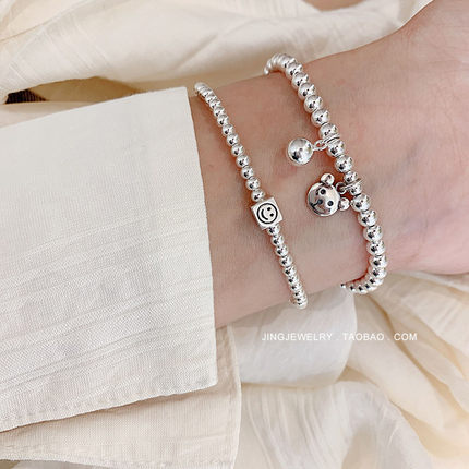 925纯银韩版小熊手链戒指女方块笑脸宝宝款儿童手串小众日韩