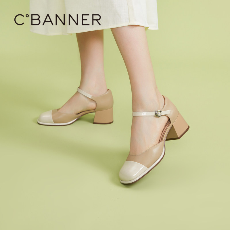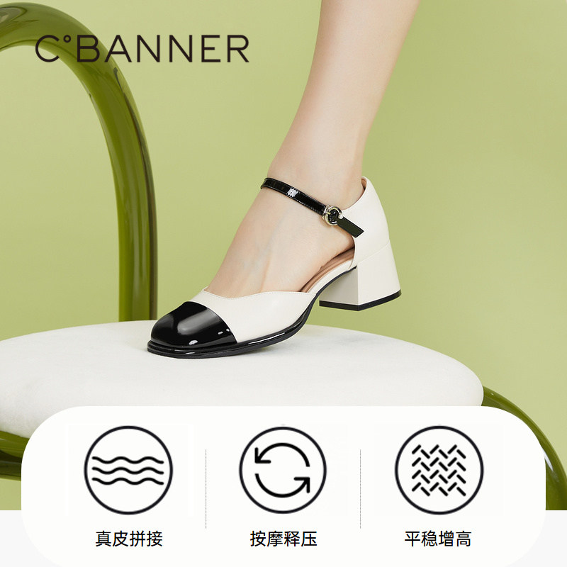 千百度女鞋夏季新款时装半凉雨林茉莉小香凉鞋玛丽珍单鞋高跟