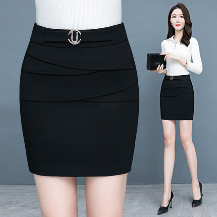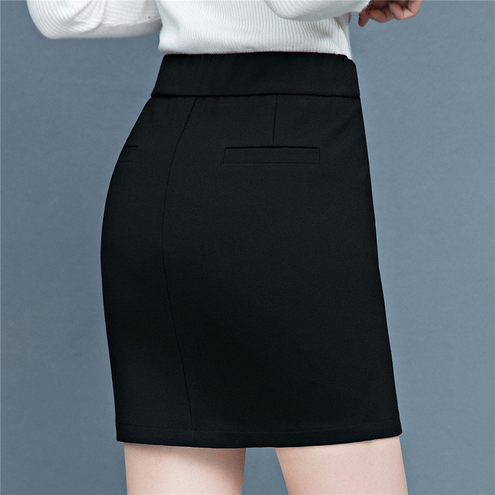 秋冬黑色短裙女弹力松紧腰修身显瘦职业西装裙裤包臀防走光一步裙
