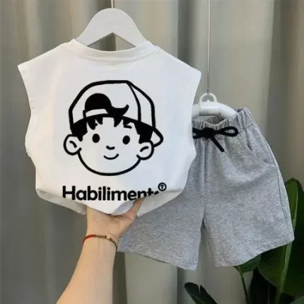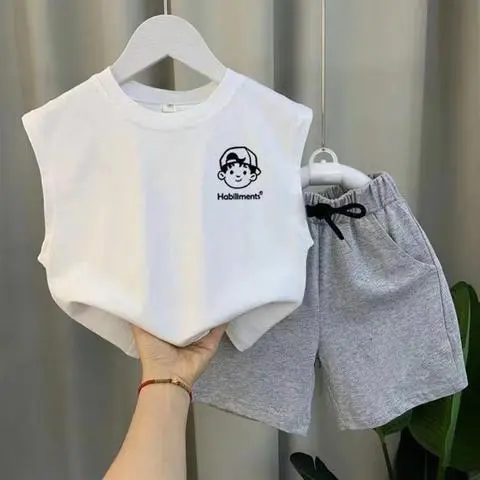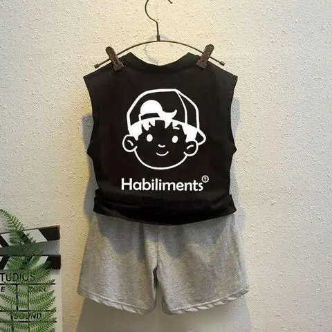 短裤背心套装纯棉休闲洋气无袖男童新款儿童运动套装夏季】帅气衫
