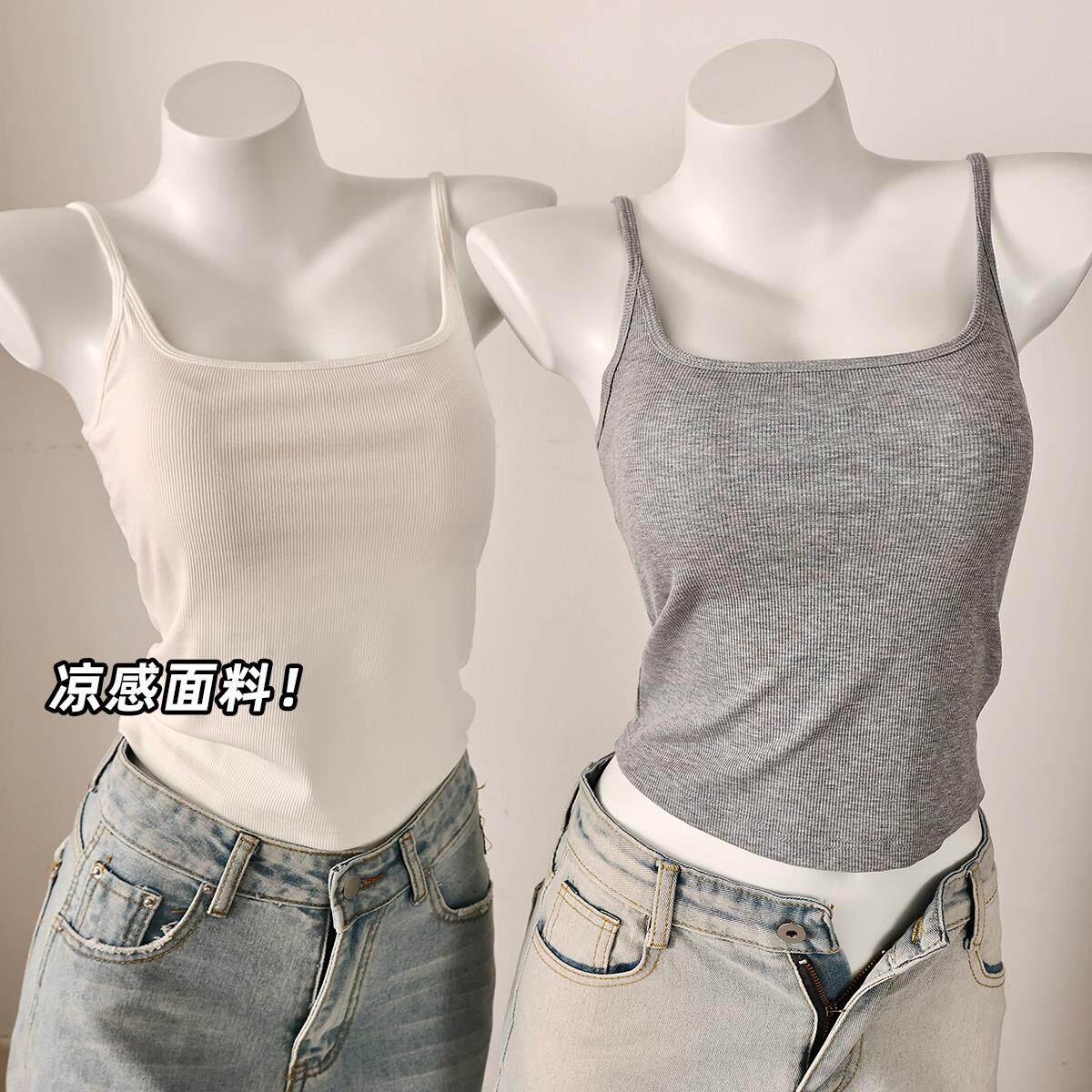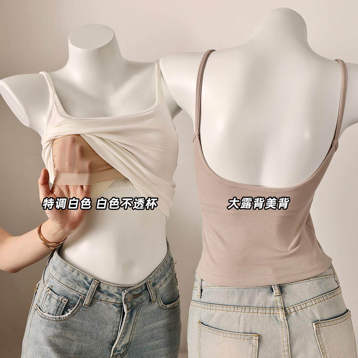 白色不透吊带背心女2025新款内搭夏大露背外穿带胸垫美背文胸一体