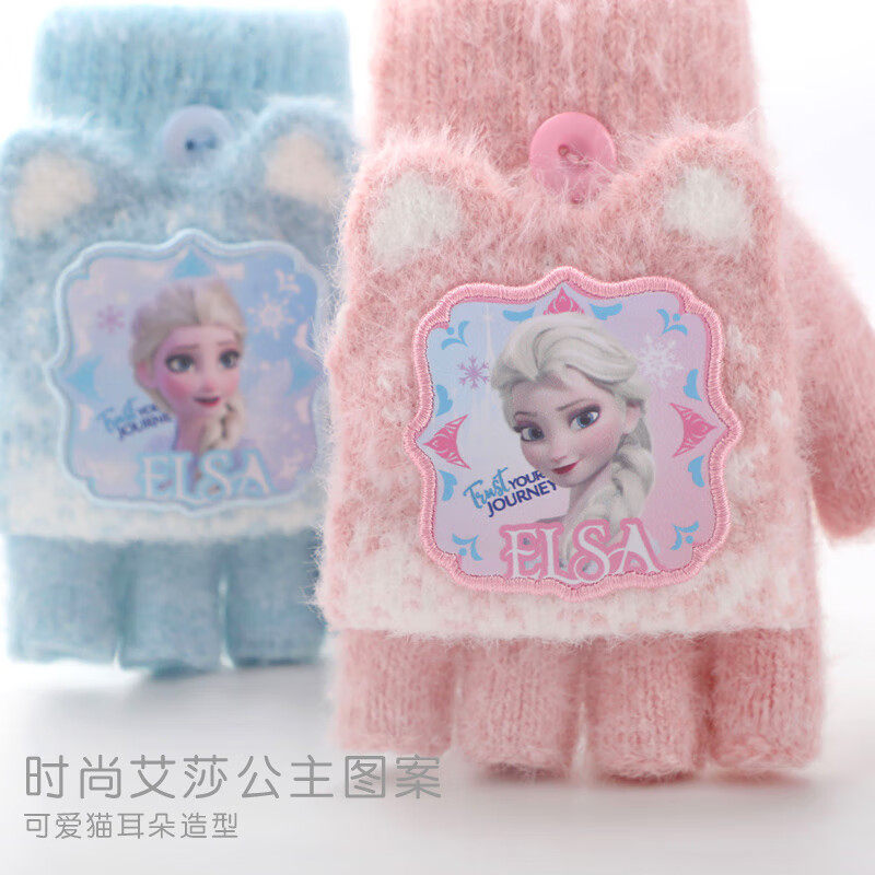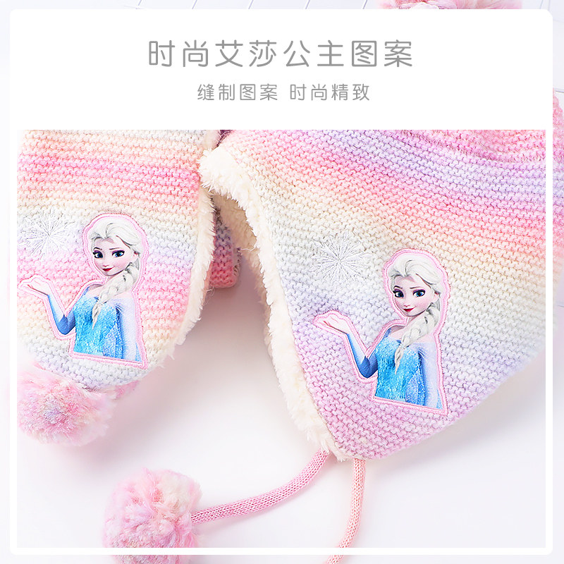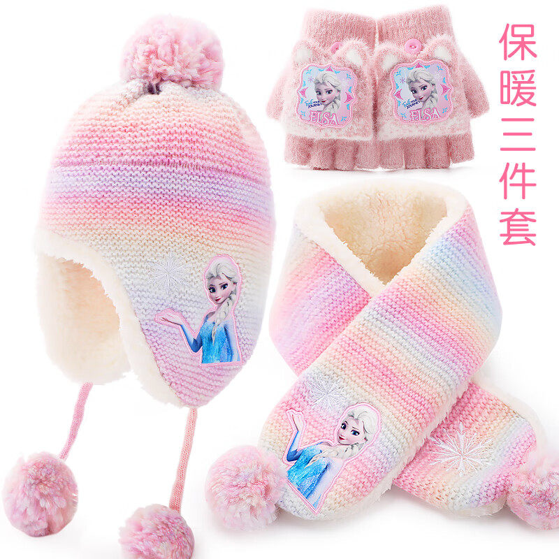 女童帽子围巾套装迪士尼艾莎公主儿童帽子手套围巾三件套秋冬围脖