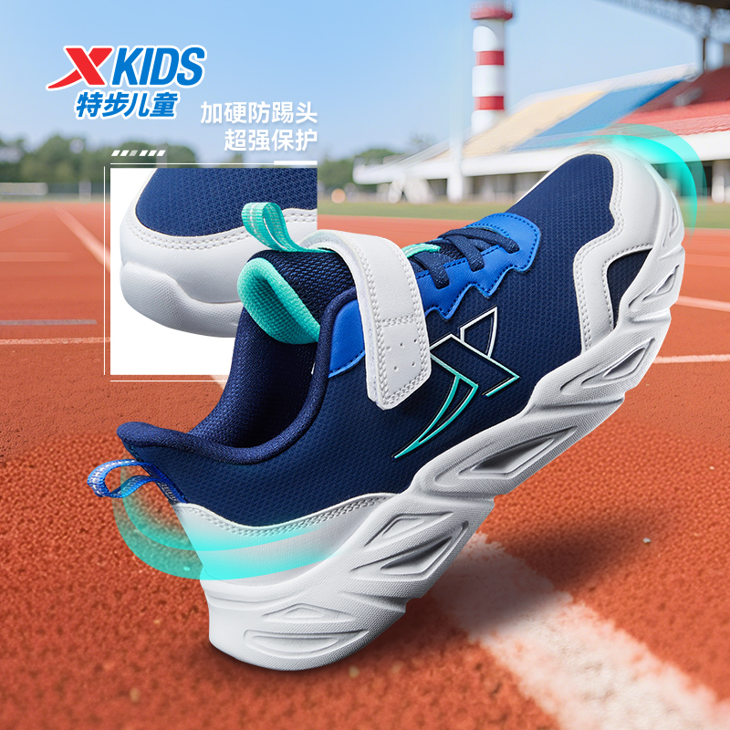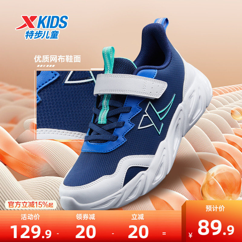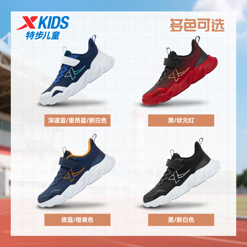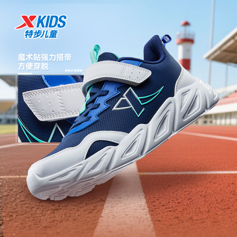 特步童鞋儿童跑步鞋秋季新款男童魔术贴运动鞋中大童软底轻便鞋子