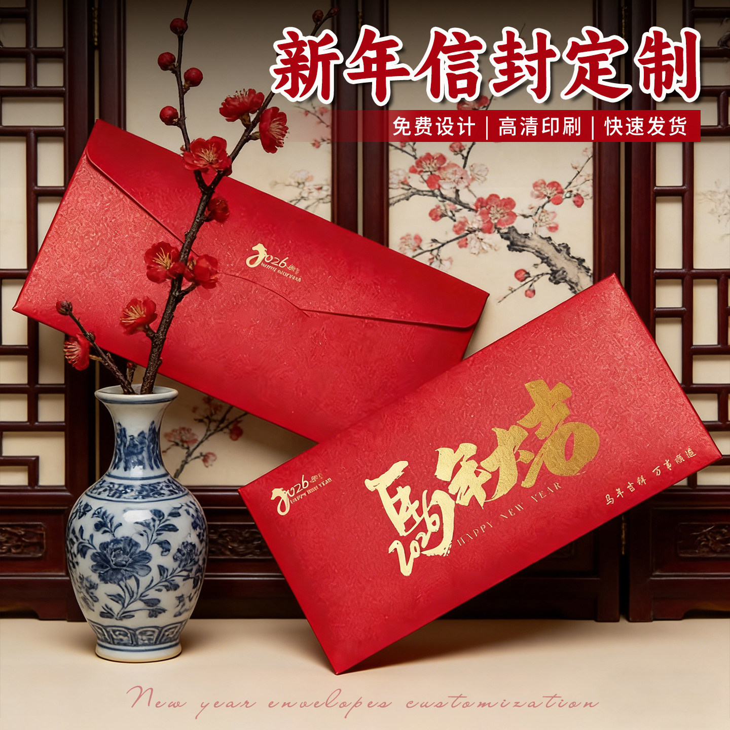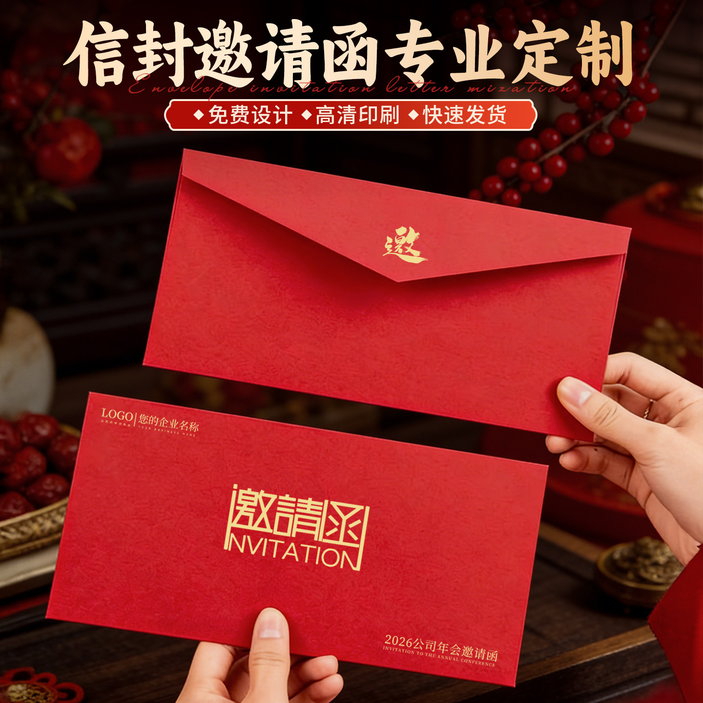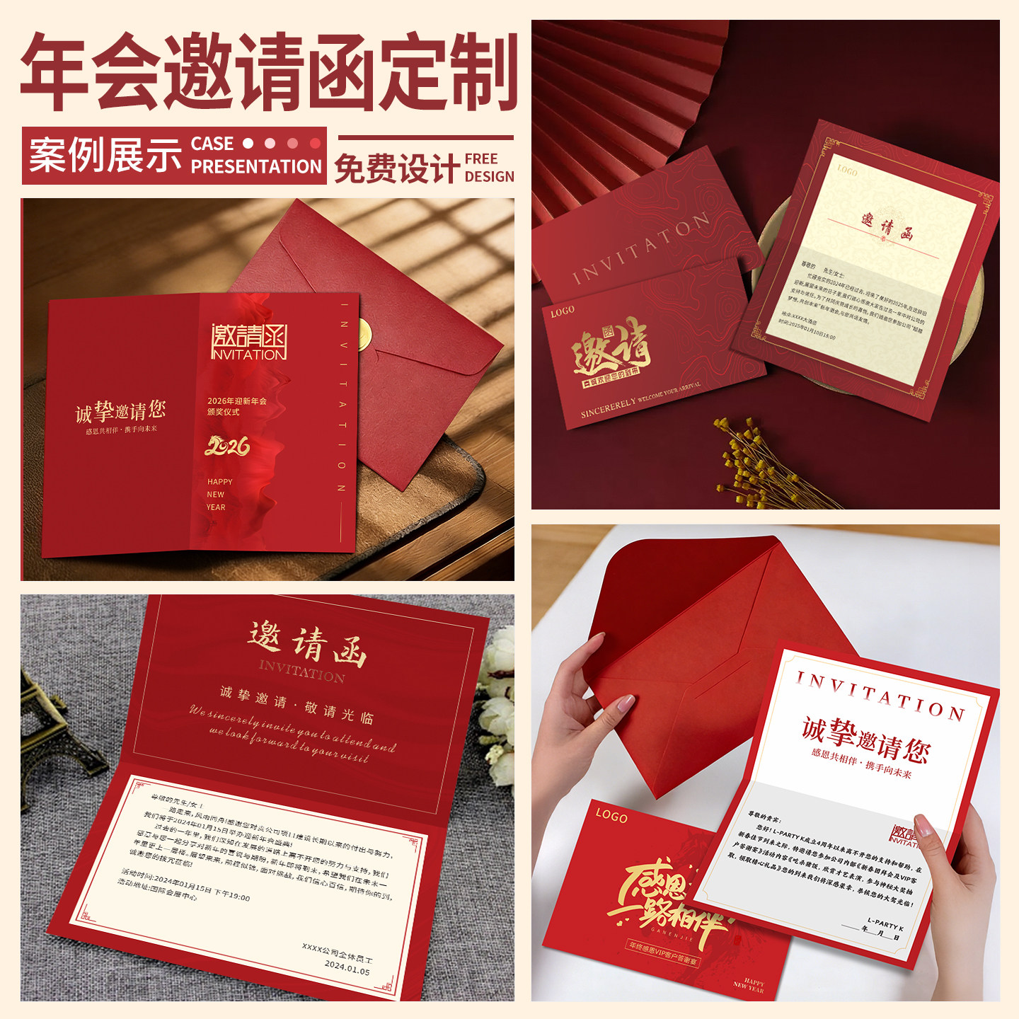 新年信封信纸套装定制公司年会活动商务邀请函请柬请帖创意设计2026马年大吉新年贺卡感谢卡红色对折卡片印刷