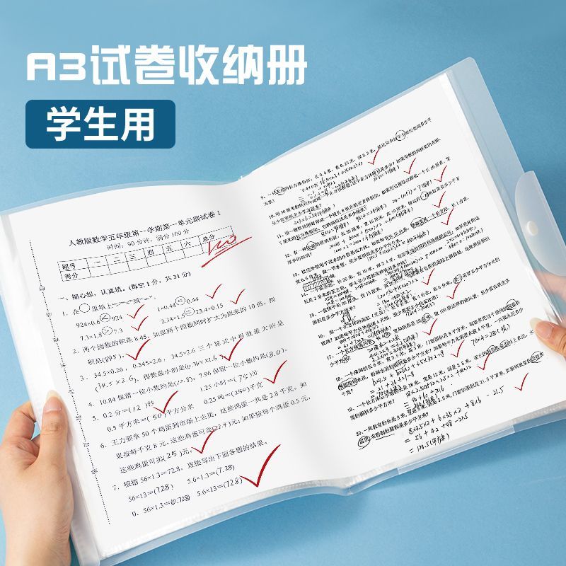 A3试卷收纳袋整理卷子资料册小学生用初中生高中生多层透明插页考卷夹分类夹收纳文件夹本考试卷夹册科目加厚