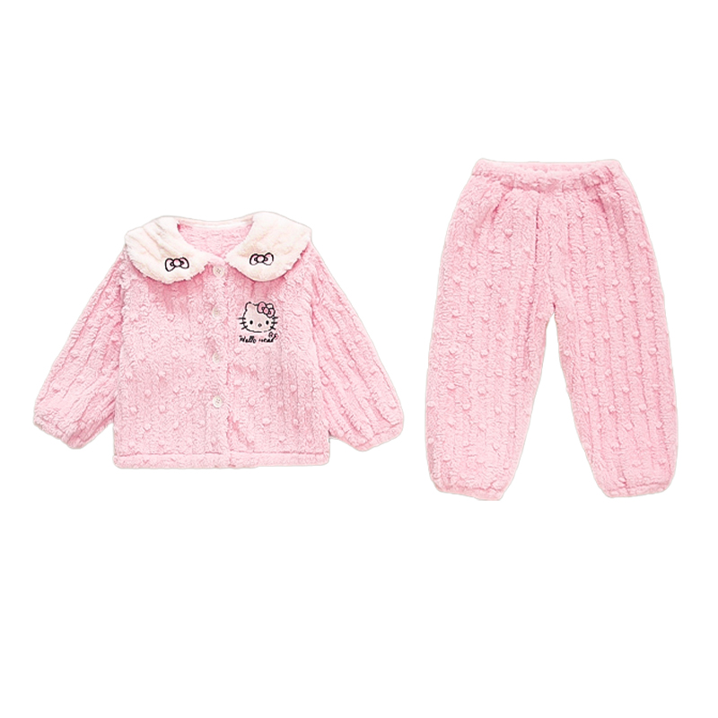 女童冬季法兰绒睡衣宝宝秋冬款家居服加绒加厚珊瑚绒儿童可爱套装