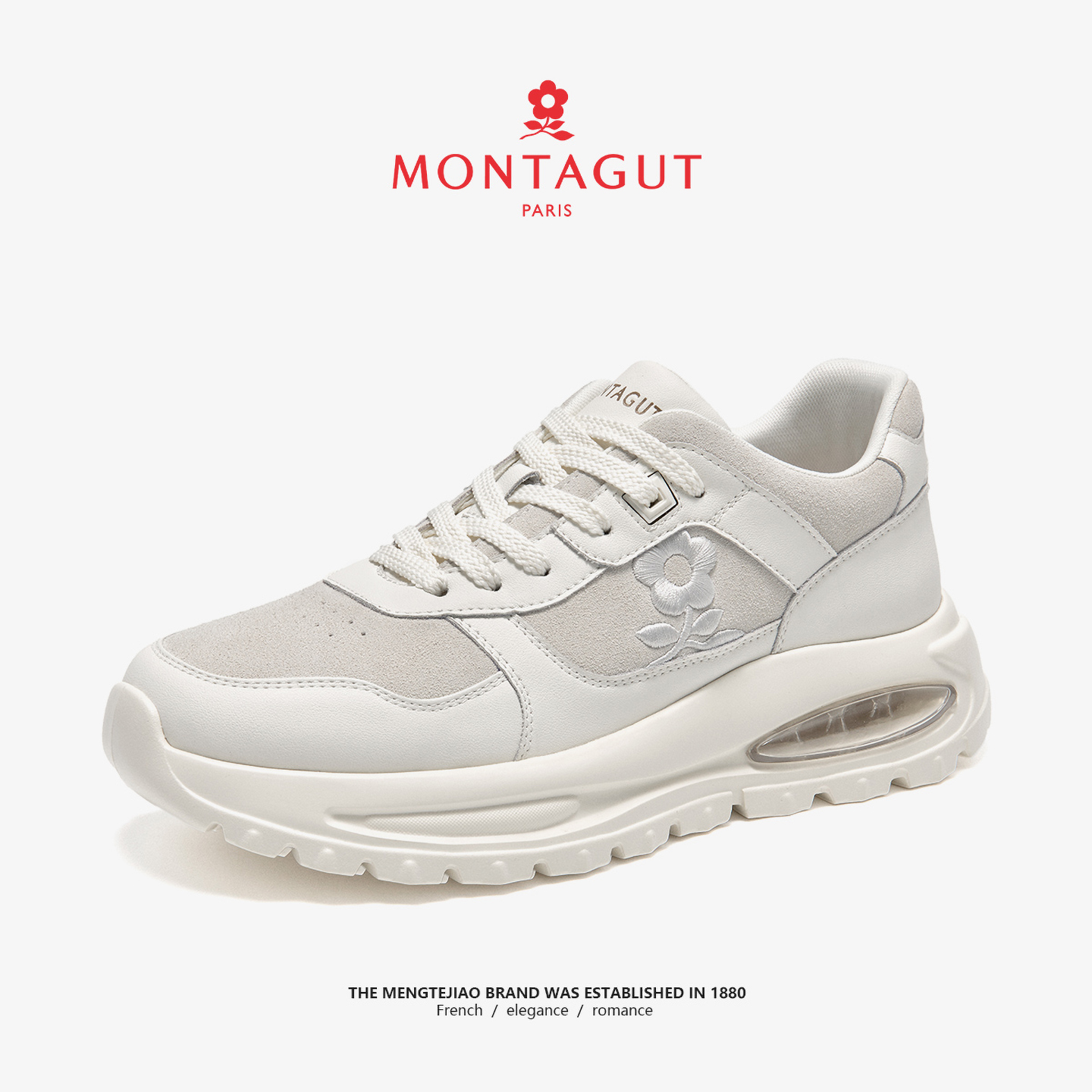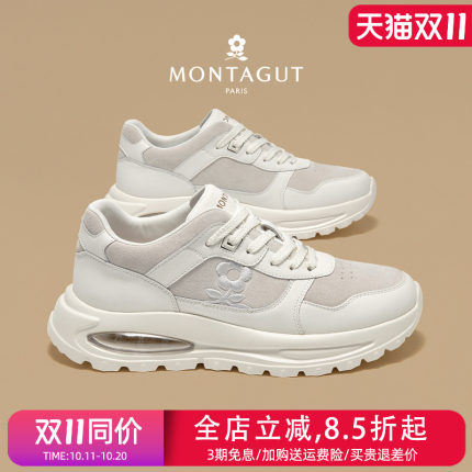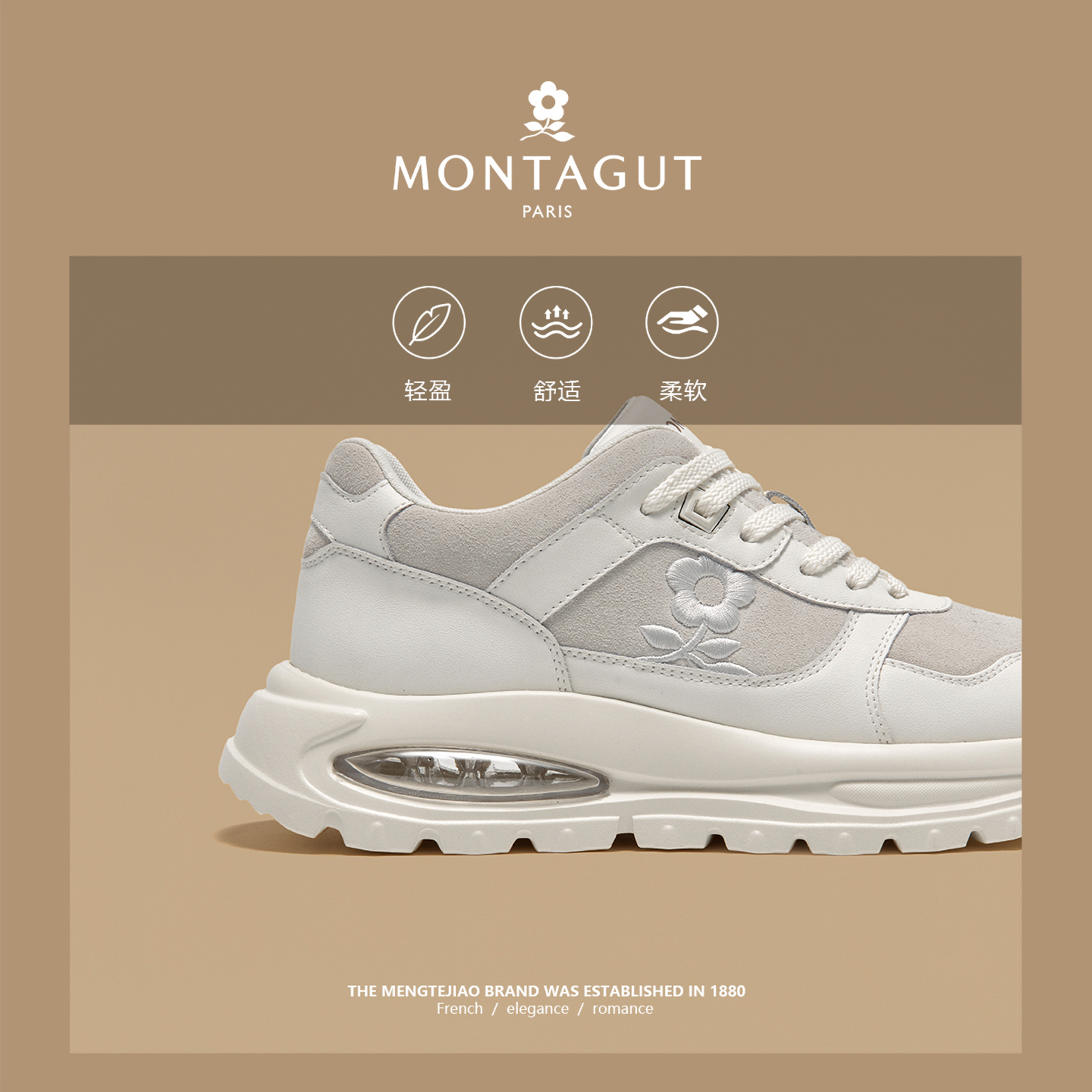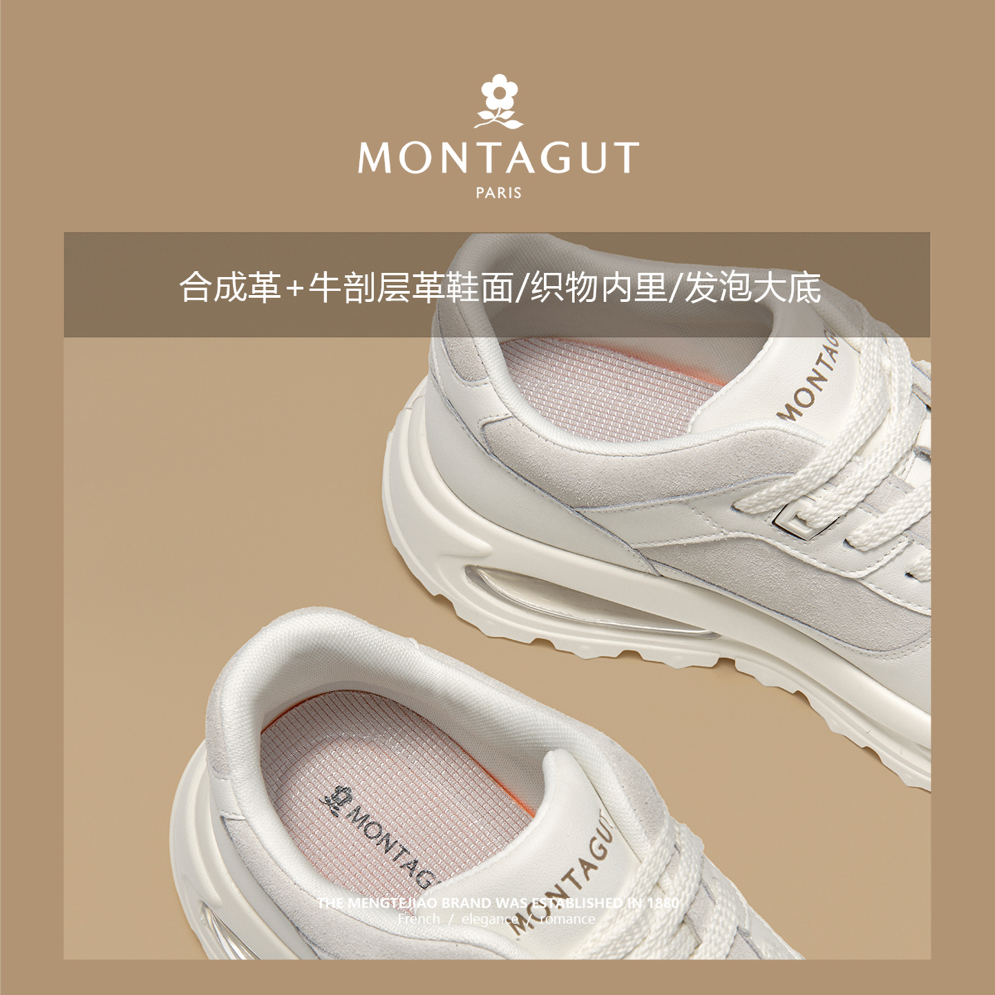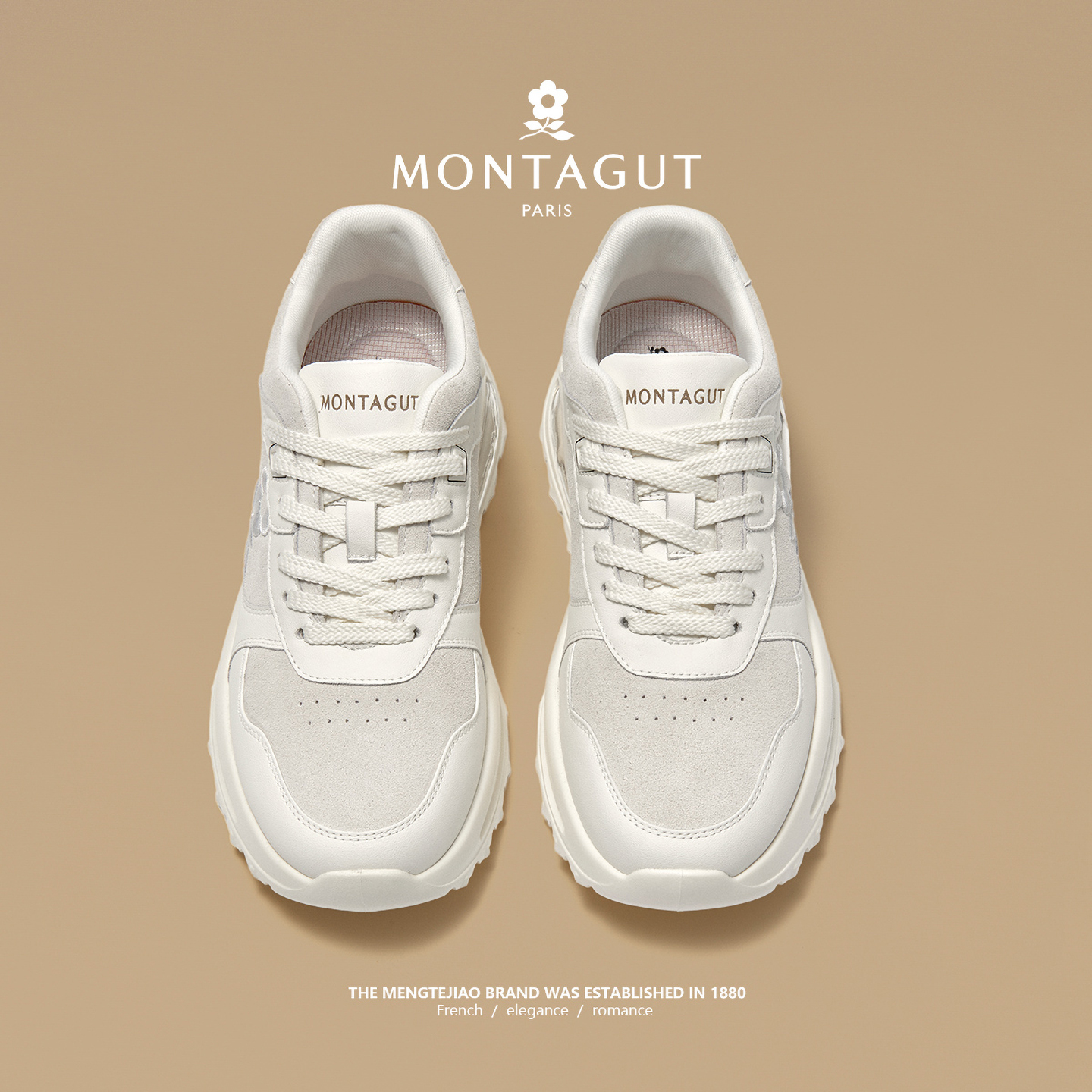 梦特娇奢侈品秋冬季老爹鞋男白色真皮系带气垫减震增高休闲运动鞋