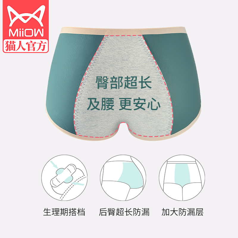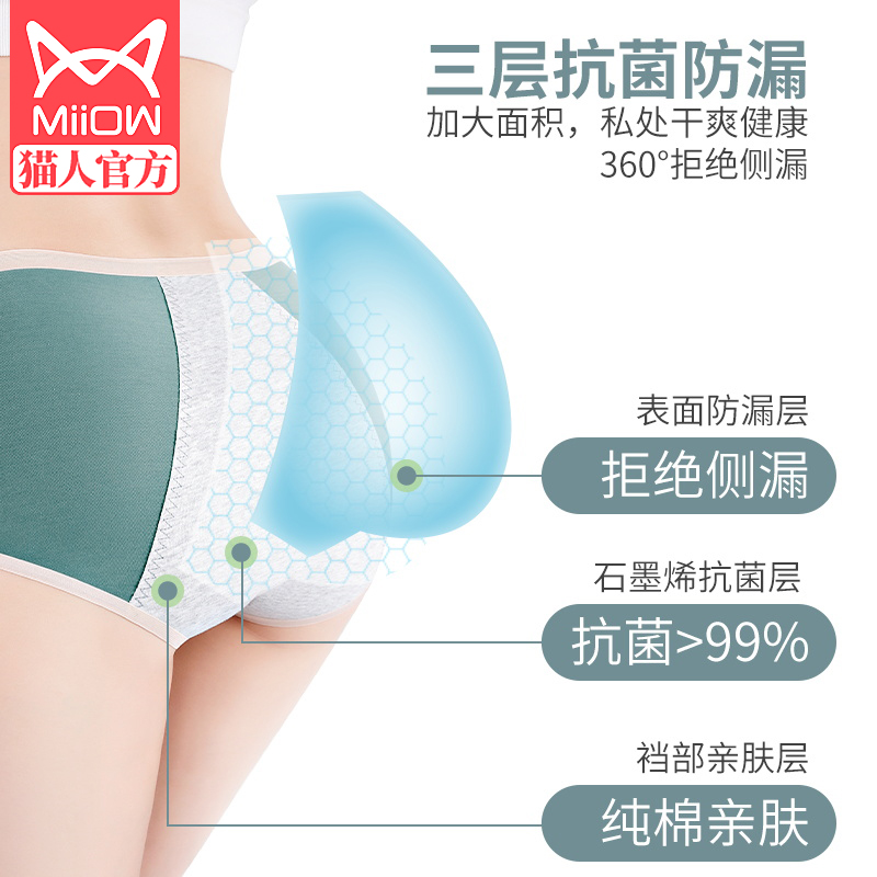 猫人内裤女月经期防漏大姨妈裤卫生纯棉抗菌透气中高腰女生生理期