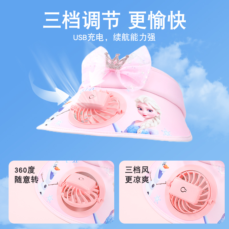 迪士尼儿童风扇帽子女童遮阳帽防晒帽女孩宝宝防紫外线太阳帽甜美