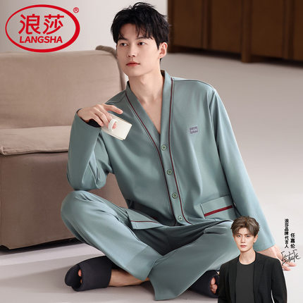 浪莎睡衣男春秋纯棉2026新款全棉长袖春秋青年男士大码家居服套装
